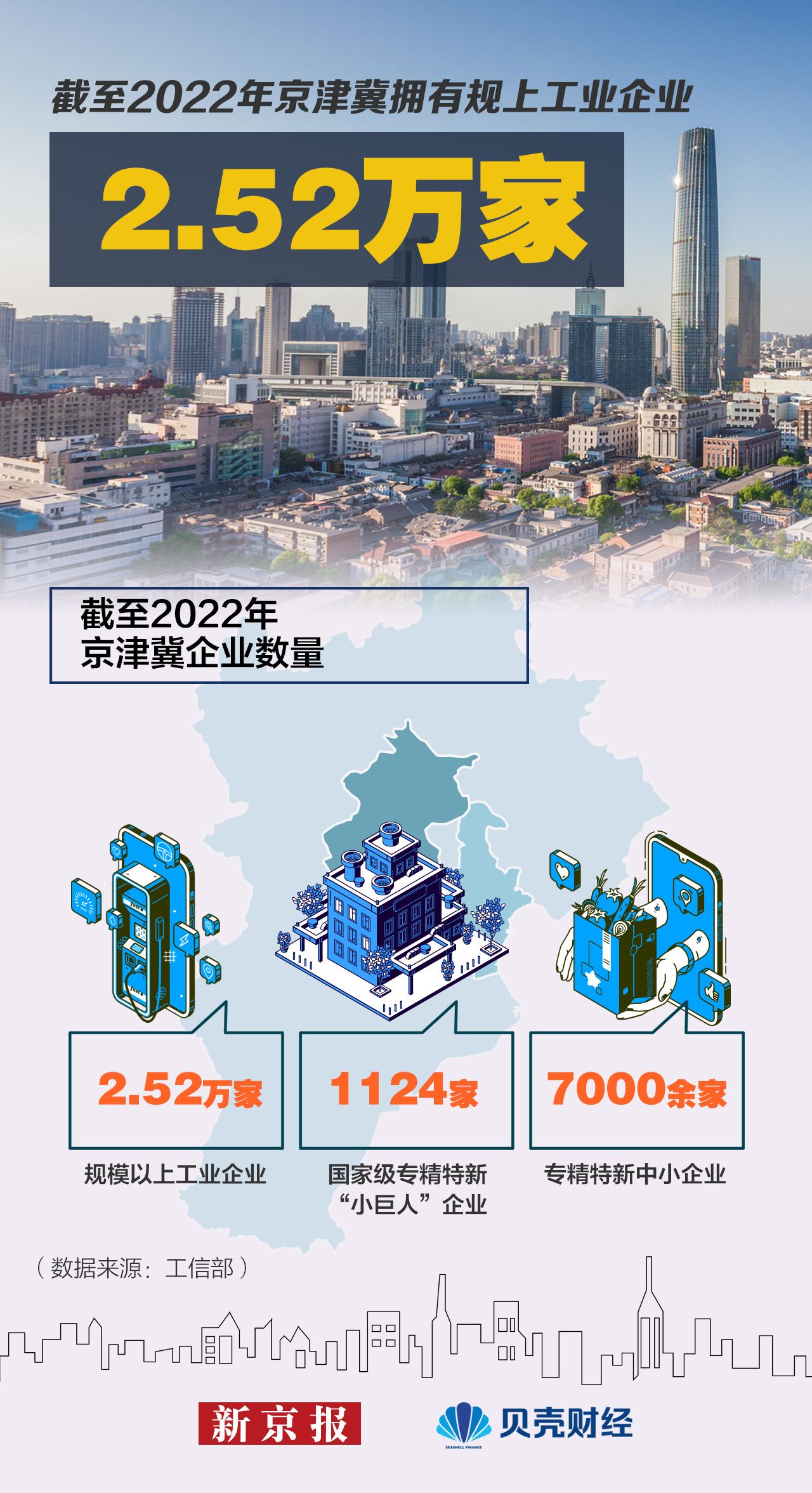与此同时,一大批规模企业和具有竞争力的优质企业在京津冀地区孕育而生,截至2022年底,京津冀地区拥有规模以上工业企业2.52万家,比2013年增加了15.8%。国家级专精特新“小巨人”企业累计1124家,专精特新中小企业7000多家,分别占比全国的12%和9%。