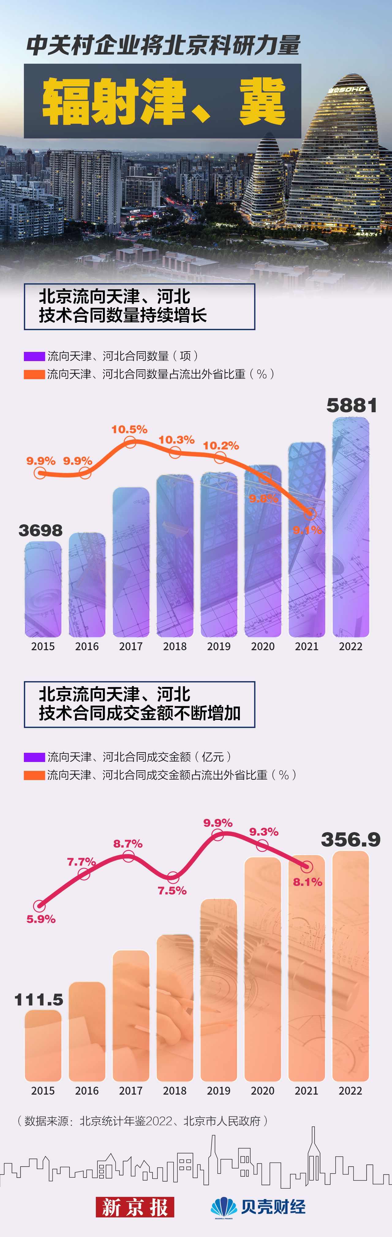 此外,截至2022年,中关村企业累计在河北、天津设立9536家分支机构,将北京科研力量辐射至天津、河北两地。