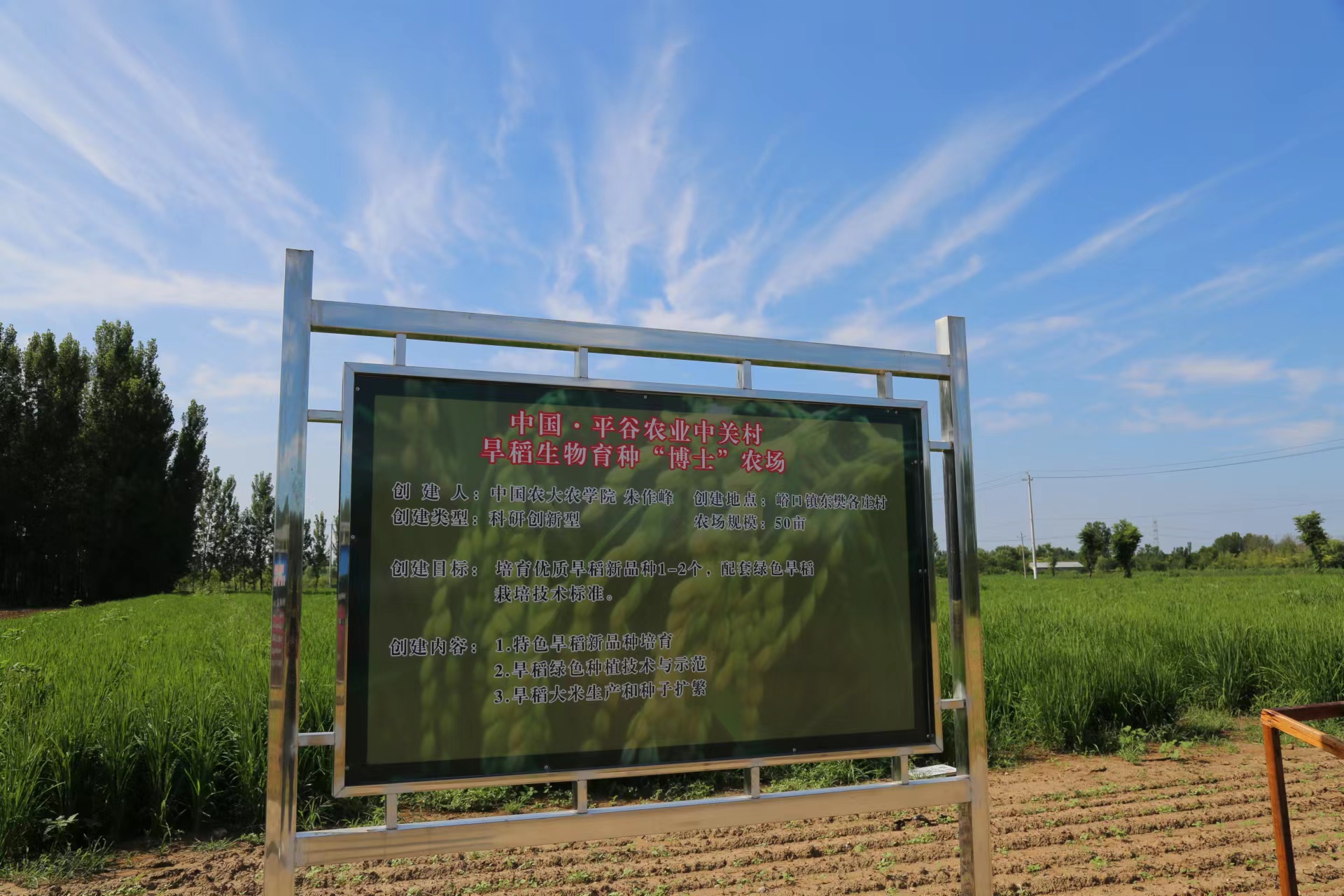 中国·平谷农业中关村旱稻生物育种“博士”农场。平谷区委宣传部供图