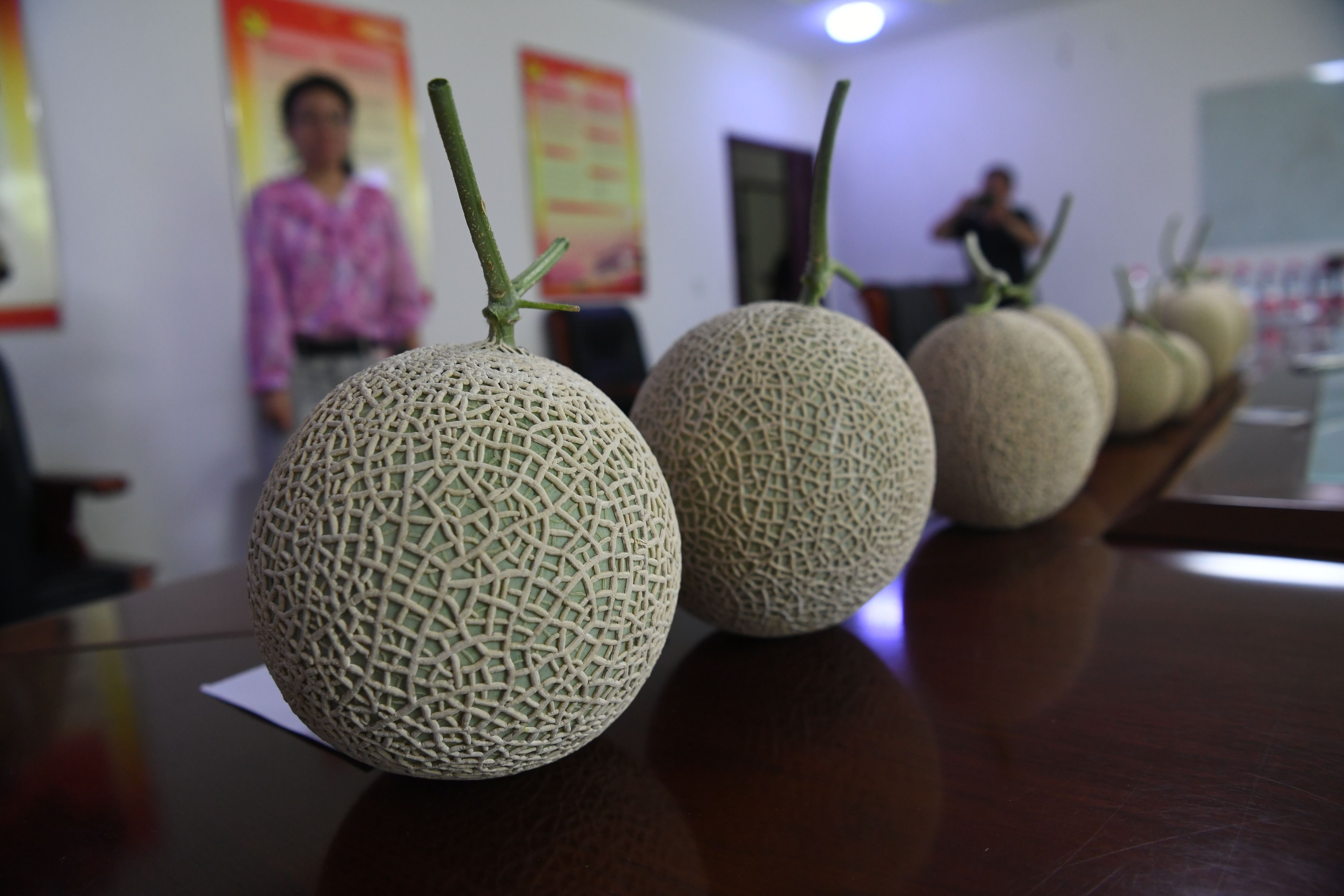 等待做糖度检测的网纹甜瓜。新京报记者 王颖 摄