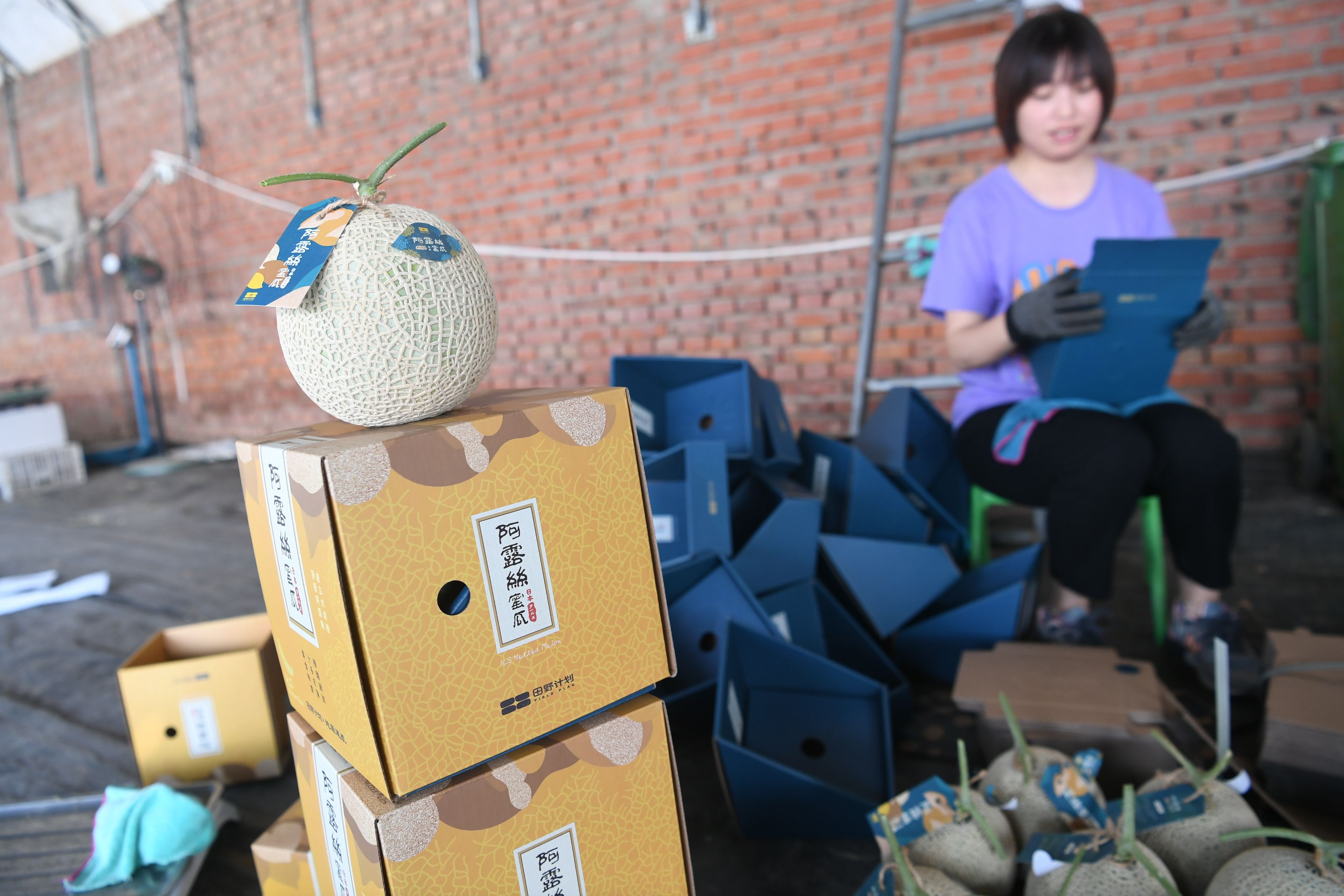 采摘的网纹甜瓜包装准备上市。新京报记者 王颖 摄