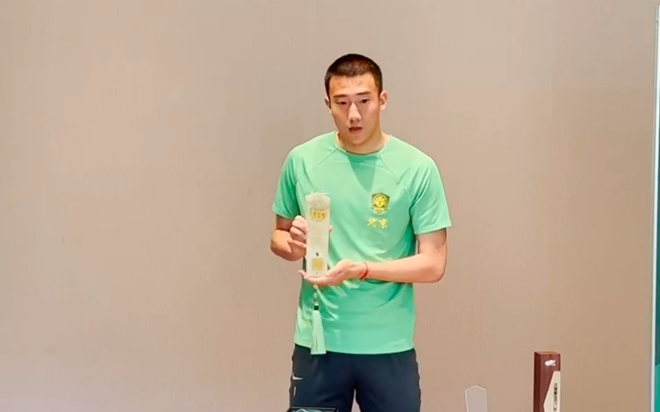 韩佳奇的玉质奖杯从令牌中获取灵感。 北京国安俱乐部供图