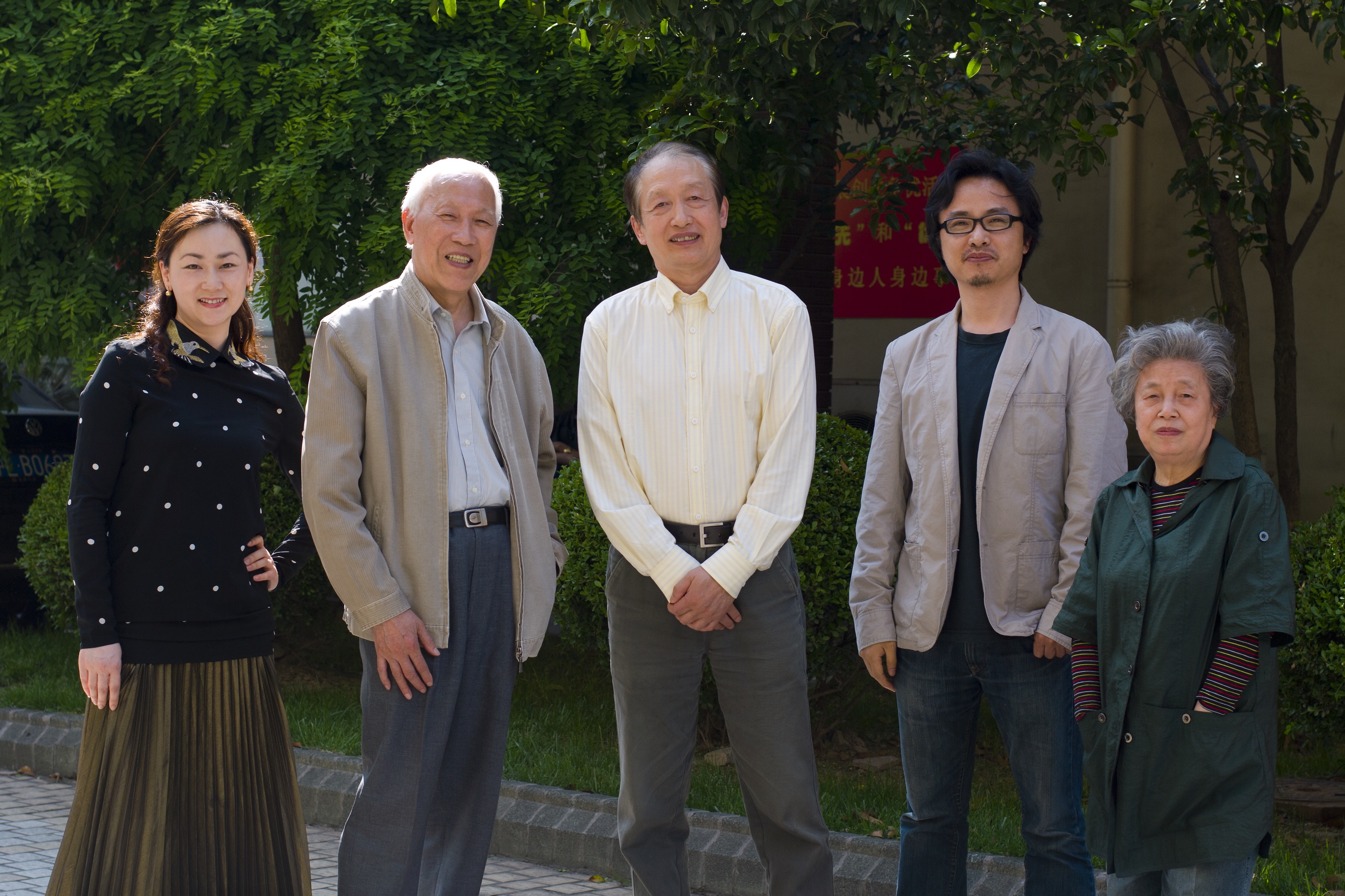 《大闹天宫》3D电影版剧组主创合影,从左至右依次:速达、严定宪、常光希、陈志宏、林文肖。