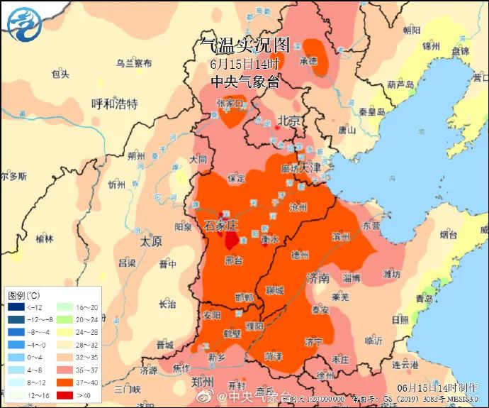 答:6月14日以来,华北、黄淮及内蒙古东南部等地出现日最高气温35℃以上的高温天气。截至6月15日数据,河北石家庄、邢台、衡水、承德、沧州、保定和山东德州、济宁等局地出现40℃至41.7℃高温天气;北京、河北4个国家站日最高气温突破6月极值。