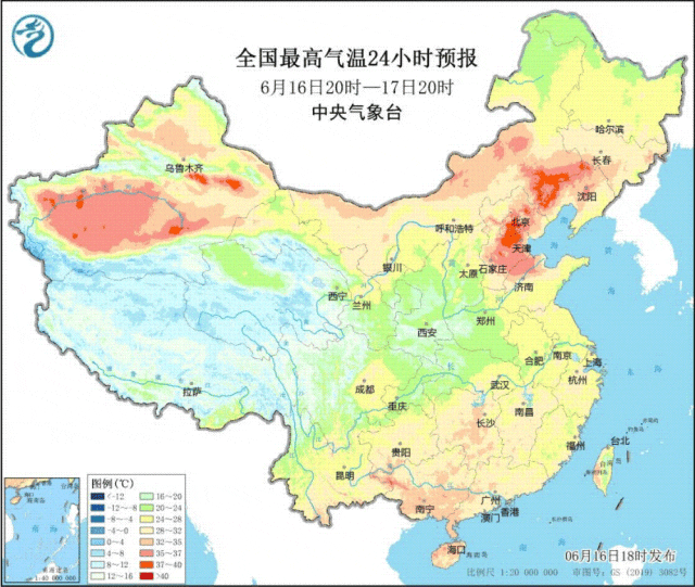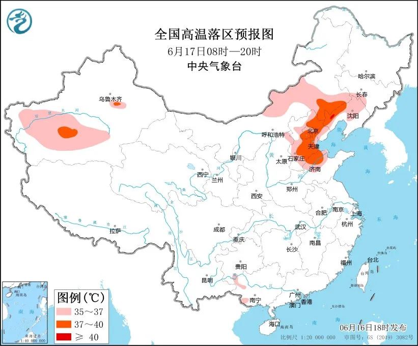 6月16日18时,中央气象台继续发布高温黄色预警。预计6月17日白天,内蒙古东南部和中部、辽宁中西部、新疆南疆盆地、河北大部、北京、天津、山东北部等地有35℃至36℃高温天气,其中,内蒙古东南部、辽宁西部、河北中北部和南部、北京、天津、山东北部等地部分地区最高气温37℃至39℃,局地可达40℃以上。部分地区最高气温将接近或达到历史同期极值。