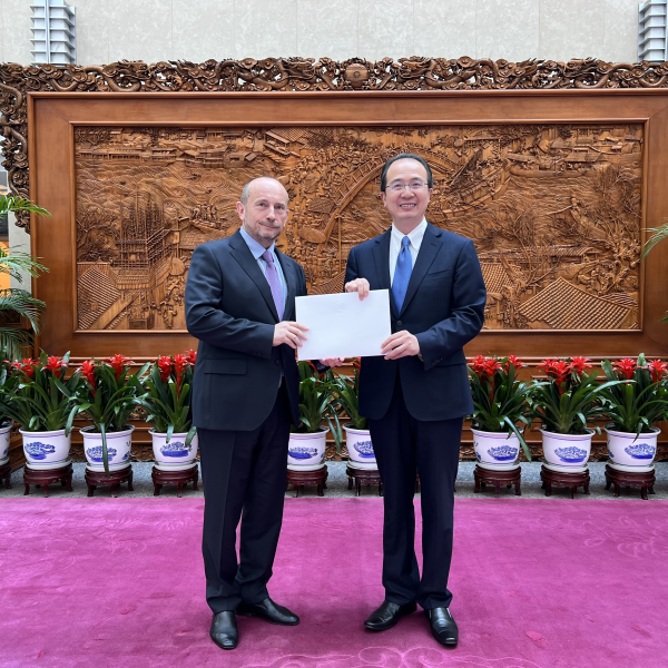 外交部礼宾司司长洪磊接受乌克兰新任驻华大使里亚比金递交国书副本