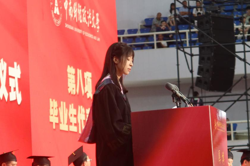中南财经政法大学2023届的毕业生有8680名。在当天该校的艺体中心,王若妍向场下参加毕业典礼的师生们回忆起了自己求学四年的动人瞬间,讲述了自我总结的一些感悟。再过几个月,她将再次踏上求学之路,赴中国人民大学攻读艺术学理论专业。
