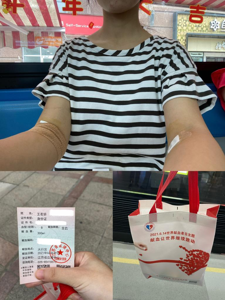 王若妍参加无偿献血。受访者供图