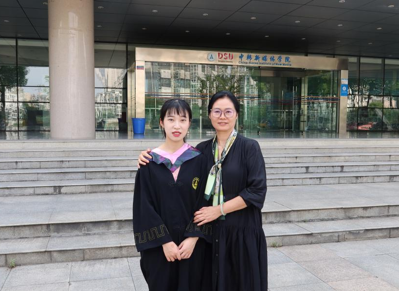 王若妍与中韩新媒体学院董玉芝教授的合影。受访者供图