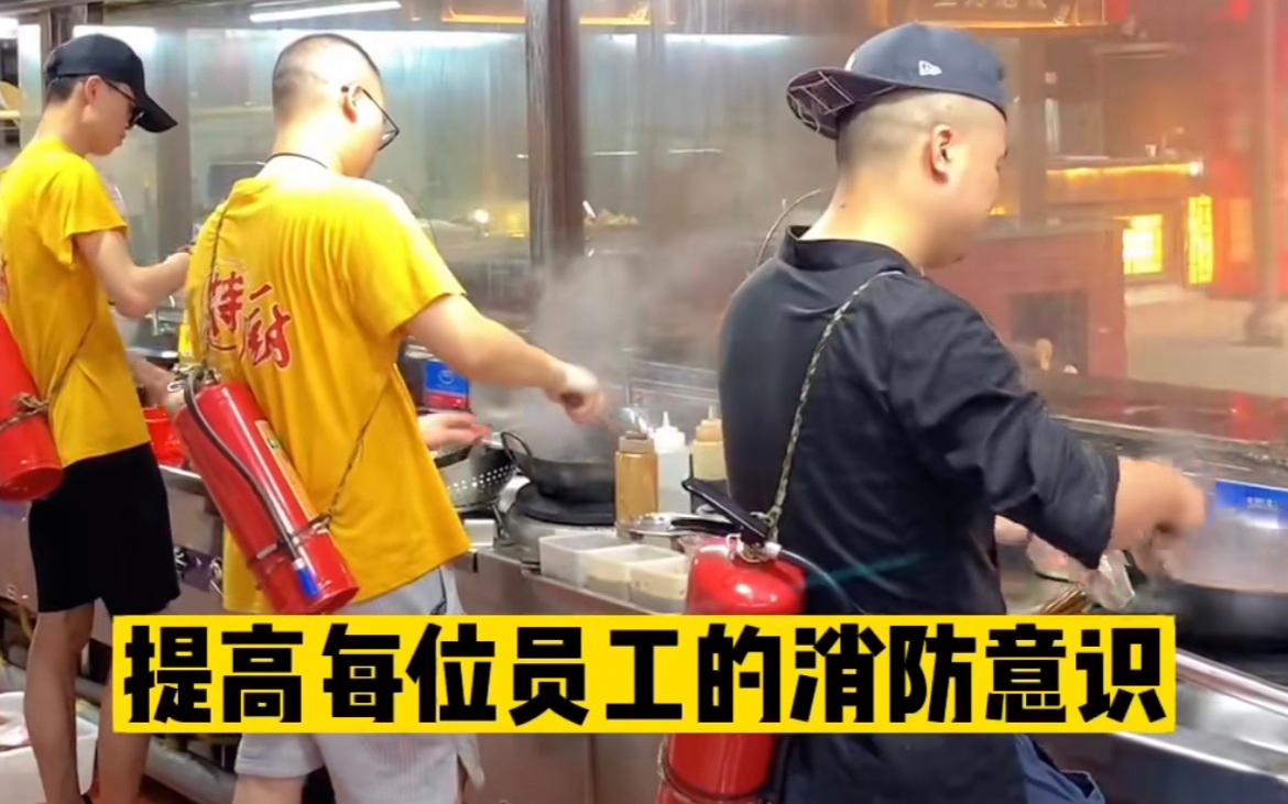 而让员工背着灭火器炒菜,实在是形式大于内容,无益于消防安全。看视频中,员工一根塑料绳背着几公斤的灭火器炒菜,除了身体上的负担,也难免发生磕碰,反而不利于员工自身安全。一旦细绳断裂,灭火器跌落遭受撞击,还可能引发物理性爆炸。