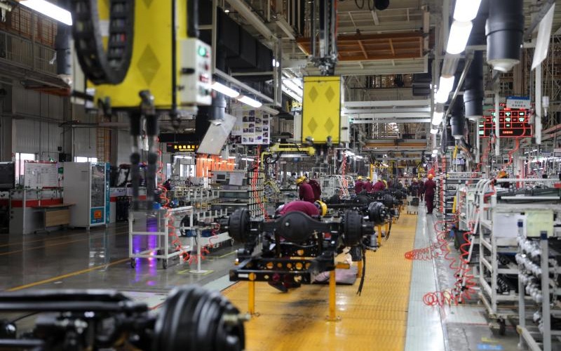 ▲2月8日,工人在江淮汽车新港基地轻卡生产线上忙碌。图/新华社