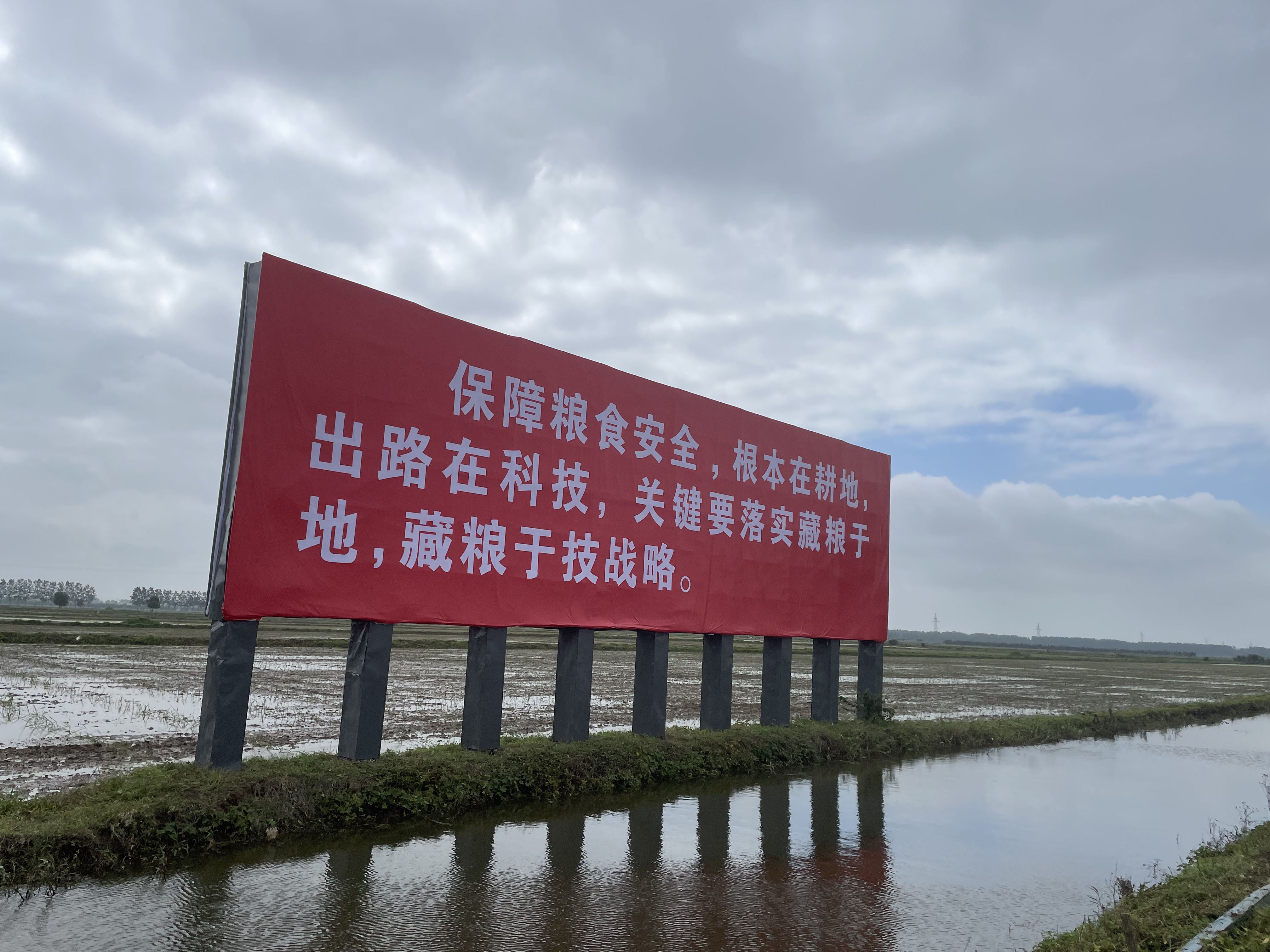 宿迁市泗洪县周边耕地及有关粮食安全和保护耕地的标语。 新京报记者 张建林 摄