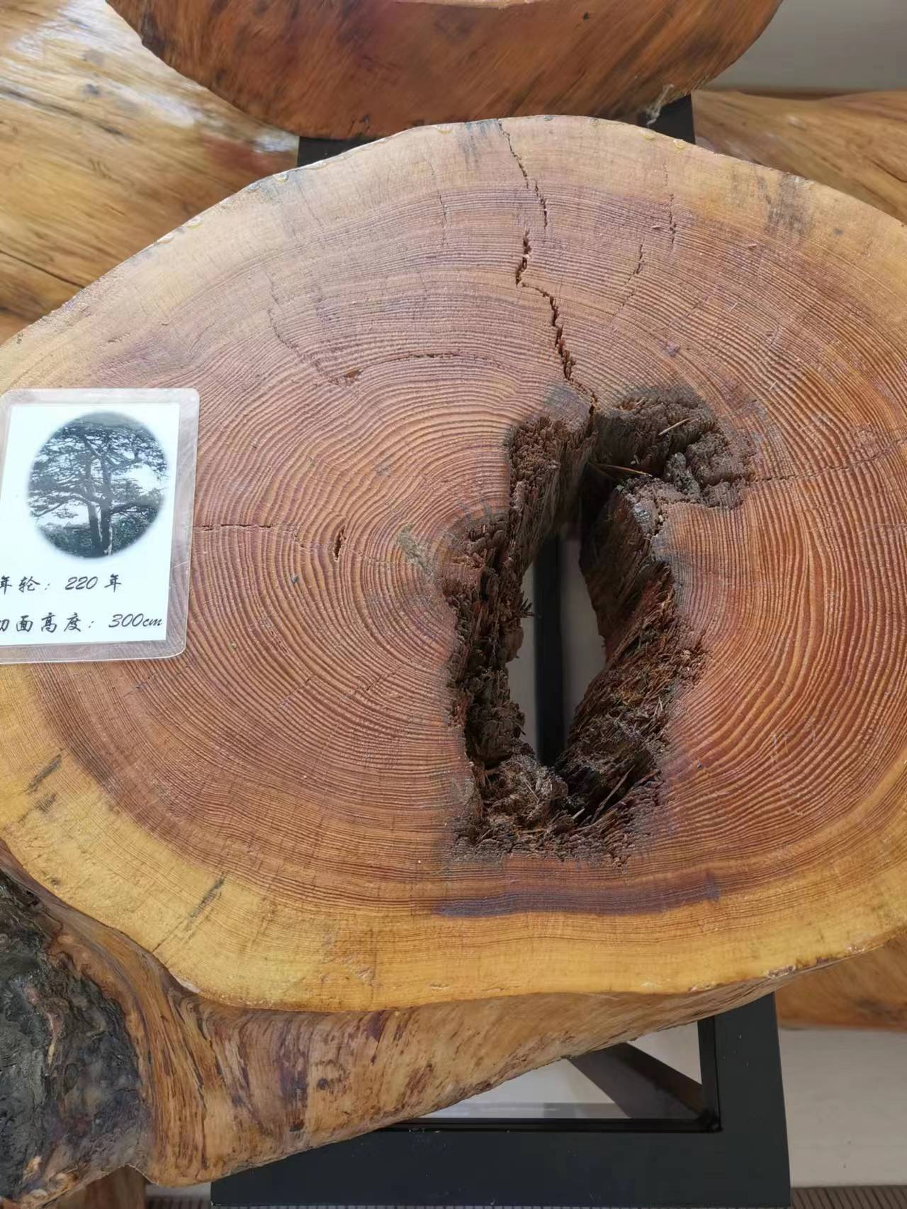 古油松原本整体外观完好,长势正常,人们肉眼很难发现它的问题。2017年,当地突遇雷雨大风天气,古油松体量太大,被大风齐根吹折。大家这才发现,它的树干基部存在大范围空洞腐烂的情况。如今,古油松的树干基部被切割成若干年轮盘,古树完成了生态使命,作为展品向公众科普,参观者可以从“砧板”状的年轮盘上看到树体内部的腐朽程度。