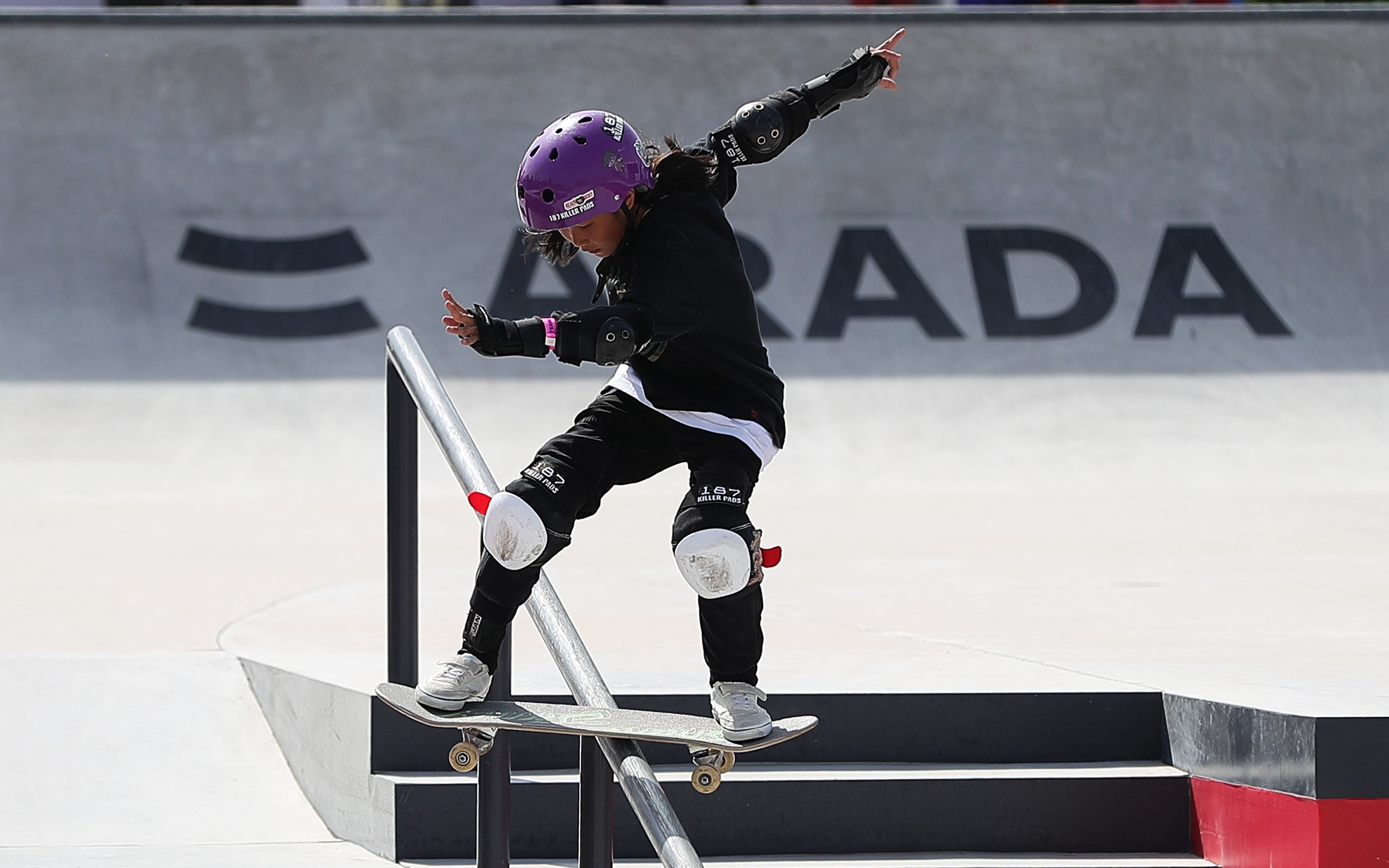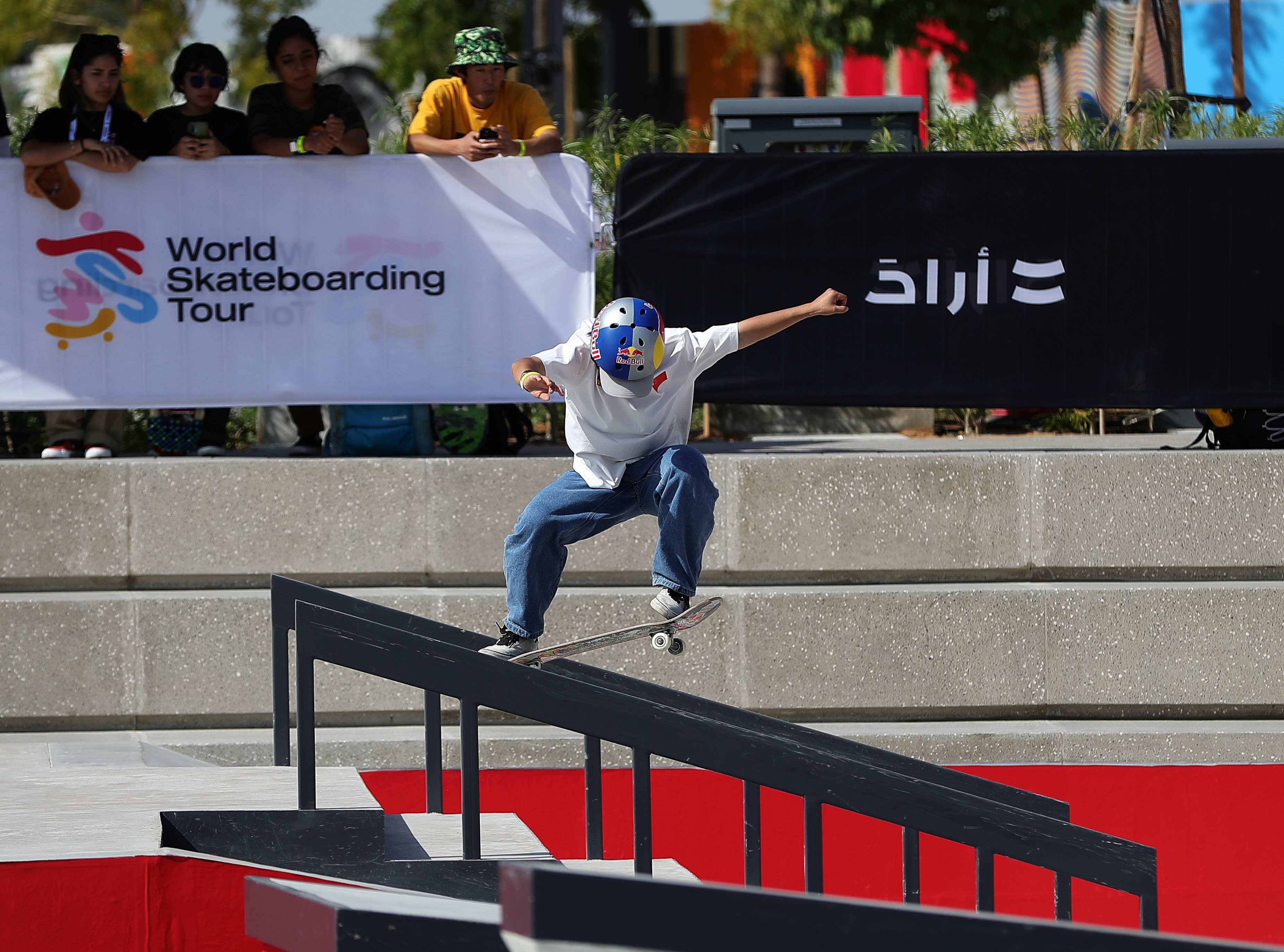 2月3日,阿联酋滑板世锦赛女子街式比赛,崔宸曦位列第30名,无缘半决赛。 图/新华社