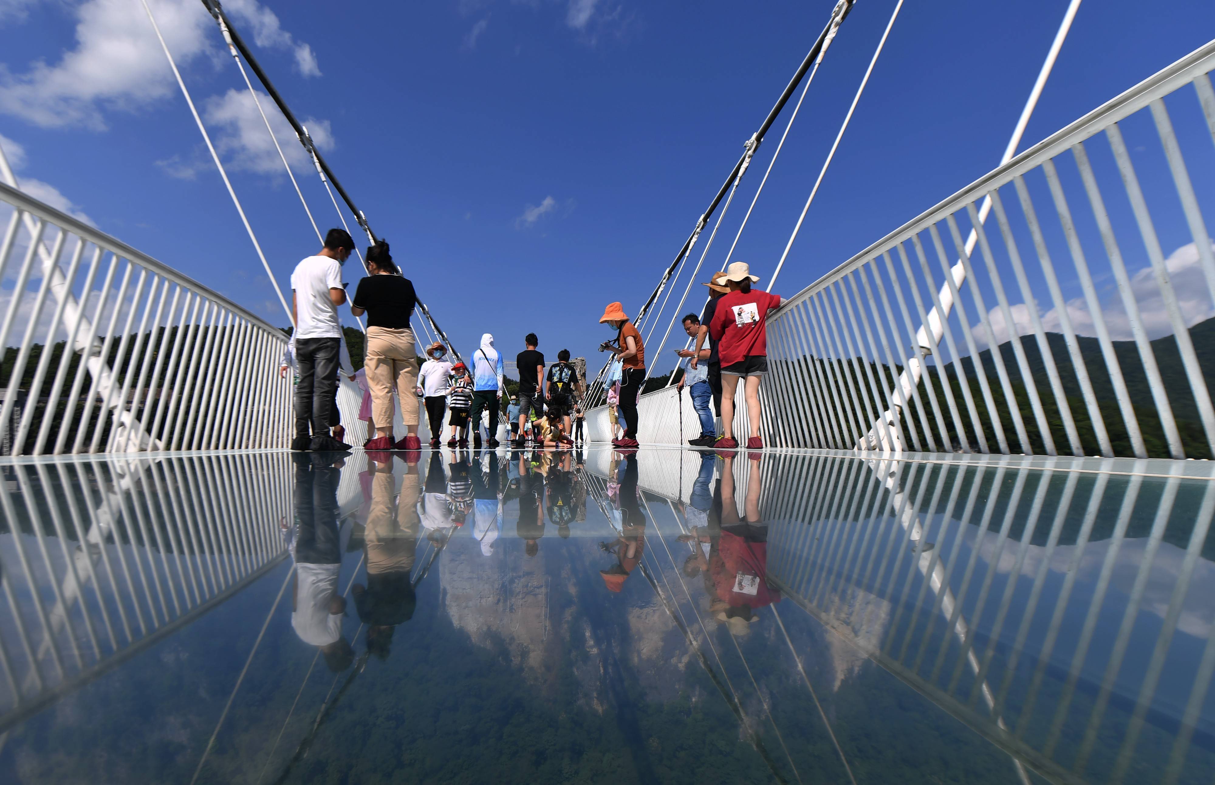 ▲游人在湖南张家界大峡谷玻璃桥游玩。图/新华社