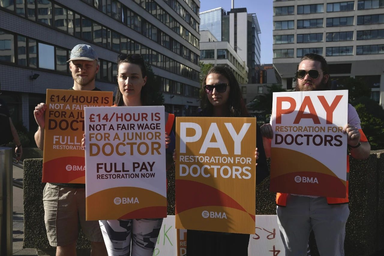 “对于资深顾问医生而言,低于通货膨胀率的工资增长简直就是侮辱。”BMA表示。作为对政府加薪计划的回应,当地时间7月17日,BMA宣布,NHS资深顾问医生不仅会在20日和21日进行罢工,还会于8月24日和25日再度罢工。