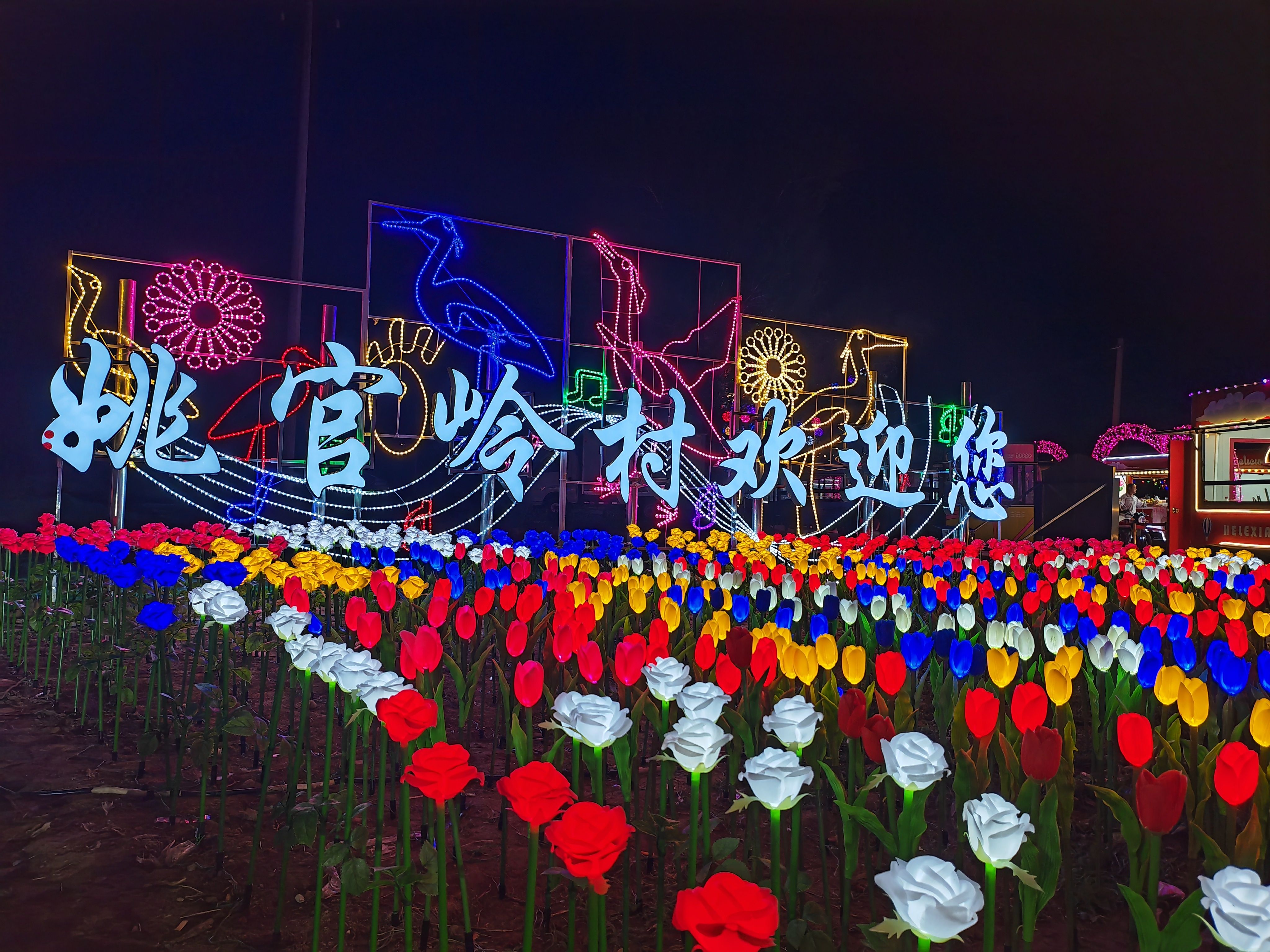 夜幕降临,璀璨的灯光点亮了姚官岭村,属于姚官岭村的消夏避暑节正式开启了。为了让氛围感更强烈,姚官岭村在主要街道安装了网红全息投影、网红音乐钢琴灯、万盏花灯等。游客置身花的世界、灯的海洋,享受玫瑰夜景秀霓虹闪烁,体验网红钢琴灯等趣味互动装置,感受着属于姚官岭的人间烟火气息。在姚官岭村合乐巷道路两旁设置了网红餐车,游客在此不仅可以品尝美味烤串、特色啤酒、延庆小吃,还可以感受到延庆乡土风情的独特魅力,体验国风古韵与时代潮流交织的文化表演,扫码抽奖赢取啤酒、民宿券等活动等让村子的夜晚格外热闹。