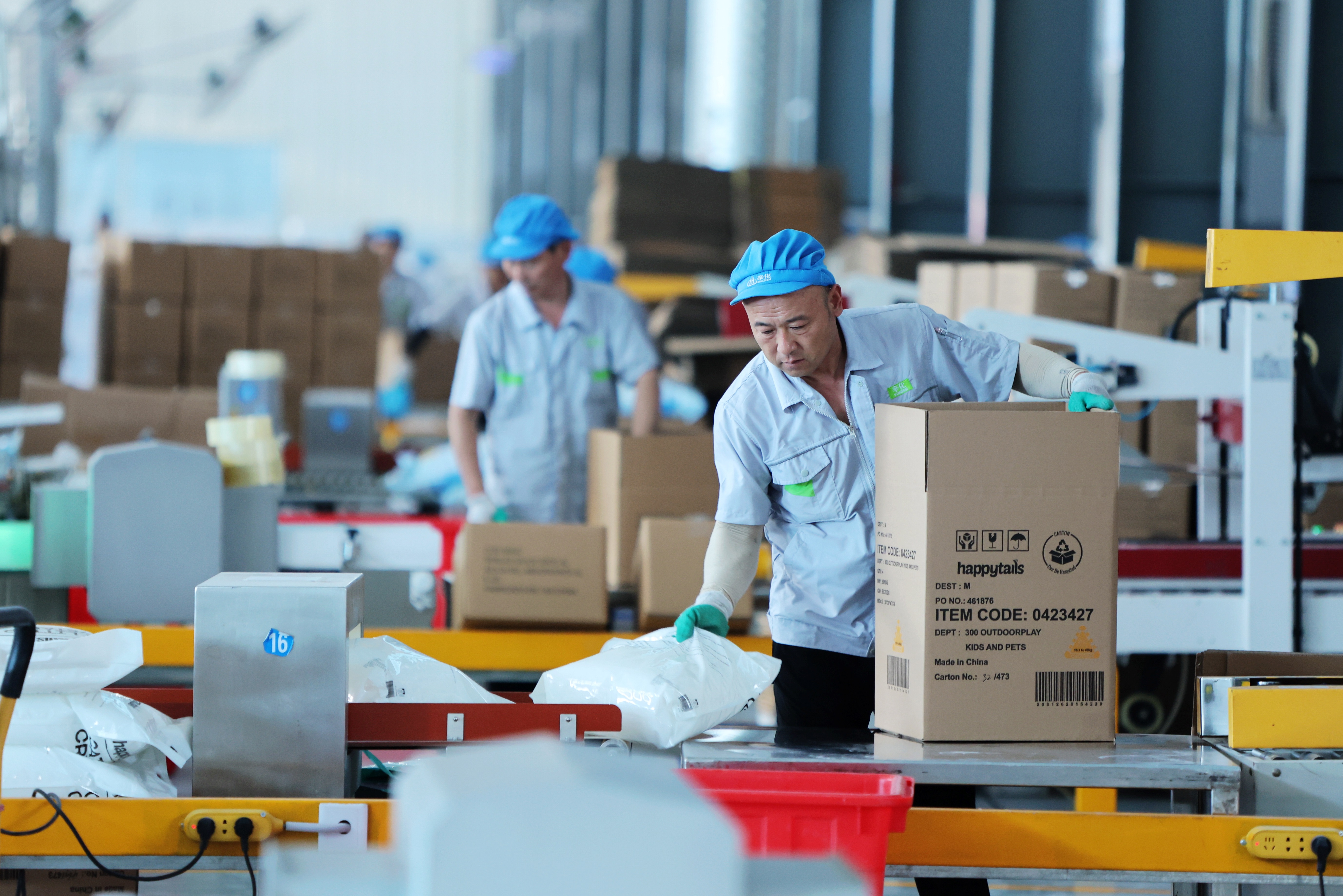 ▲6月30日,在山东辛化硅胶有限公司,工人在包装出口的猫砂产品。近年来,山东省滕州市东郭镇加快推进新旧动能转换,着力做大做强镇域民营企业。图/新华社