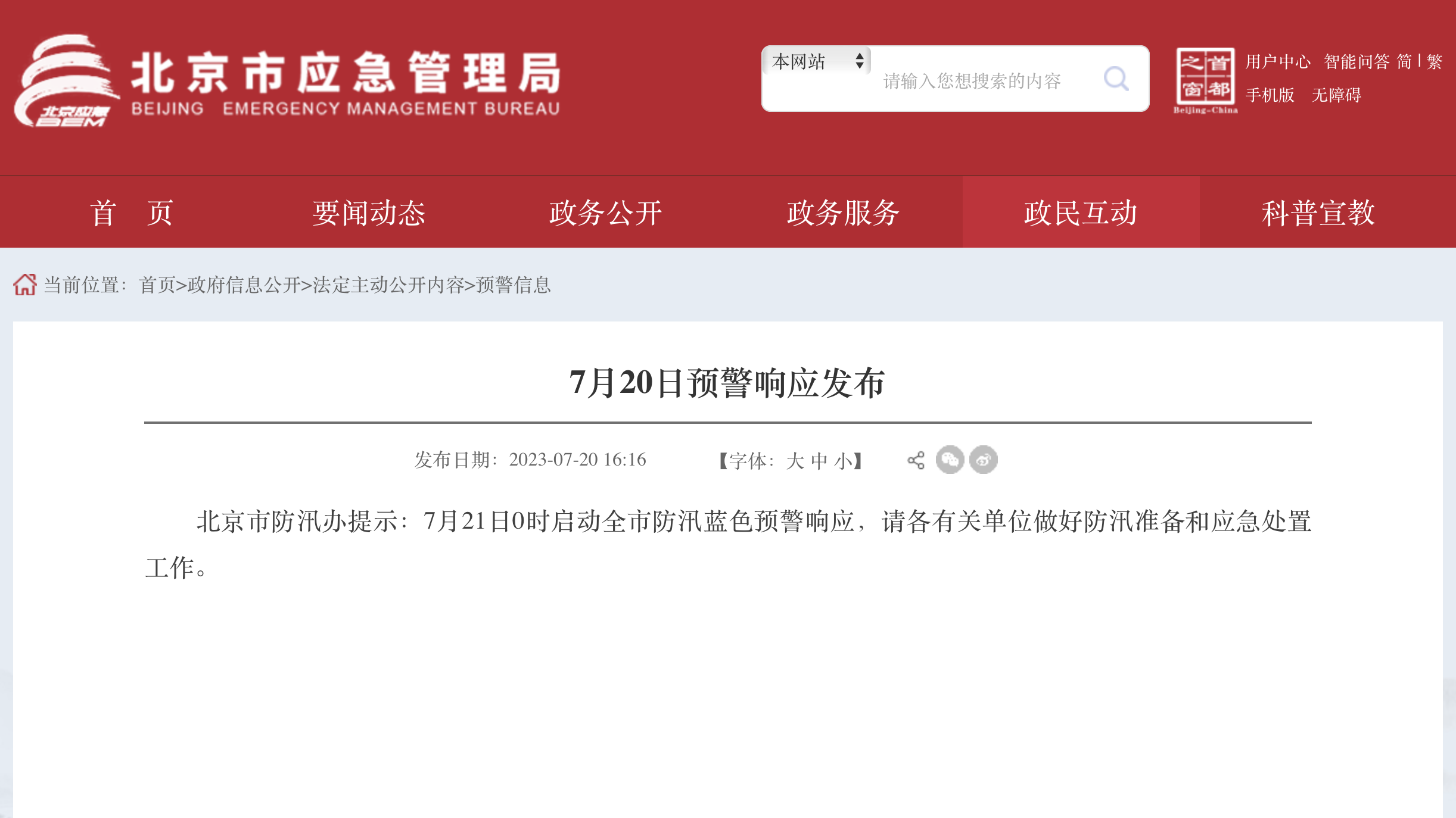北京市防汛办:7月21日0时启动全市防汛蓝色预警响应