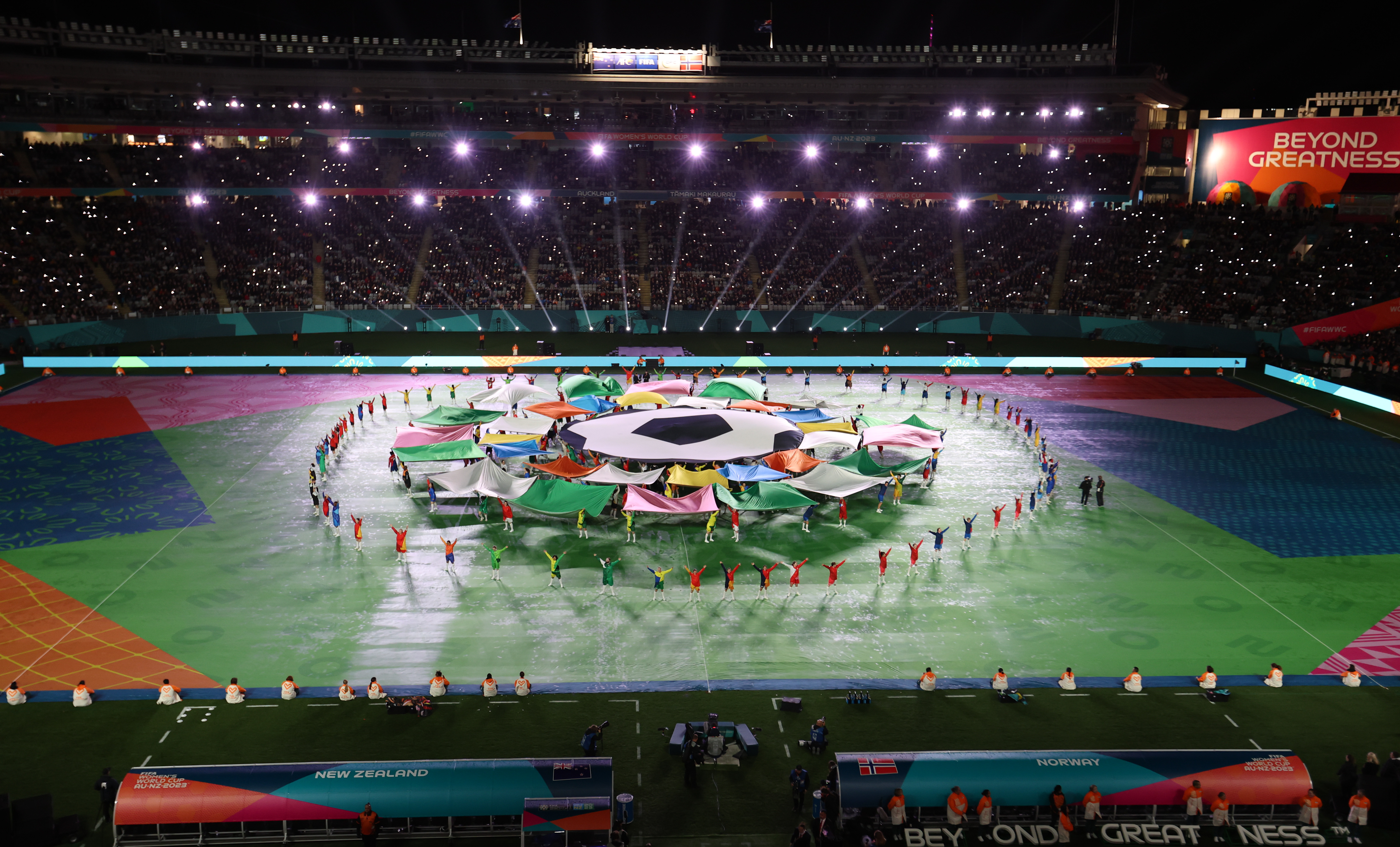 女足世界杯开幕式在新西兰奥克兰伊甸公园球场举行。 图/新华社