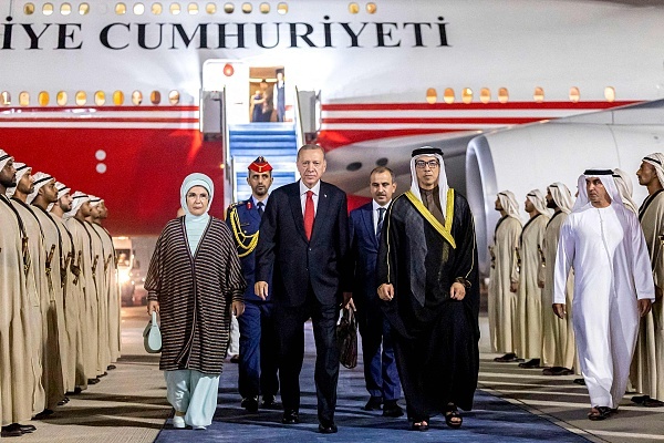 当地时间2023年7月18日,土耳其总统埃尔多安抵达阿联酋。图/央视新闻