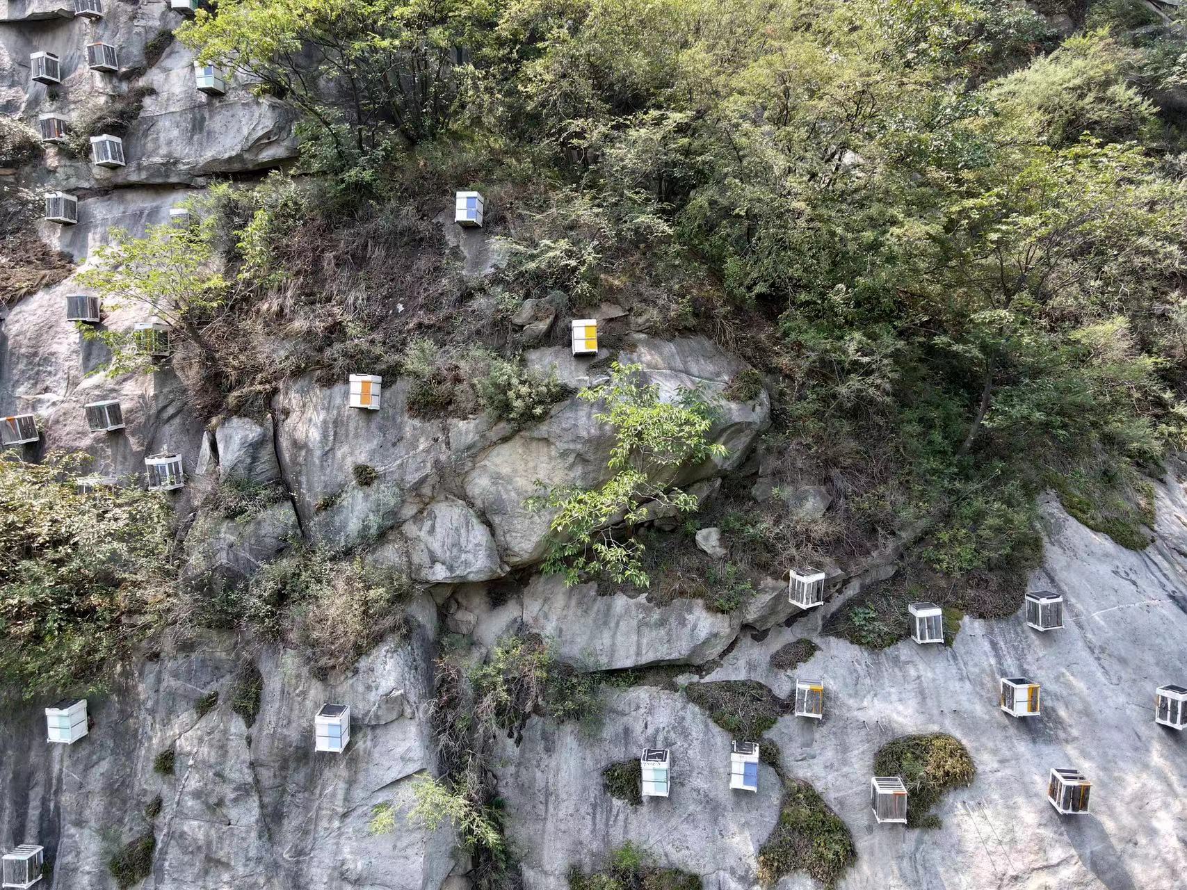 7月19日,冯家峪镇西口外村的崖壁蜂场。新京报记者 王巍 摄