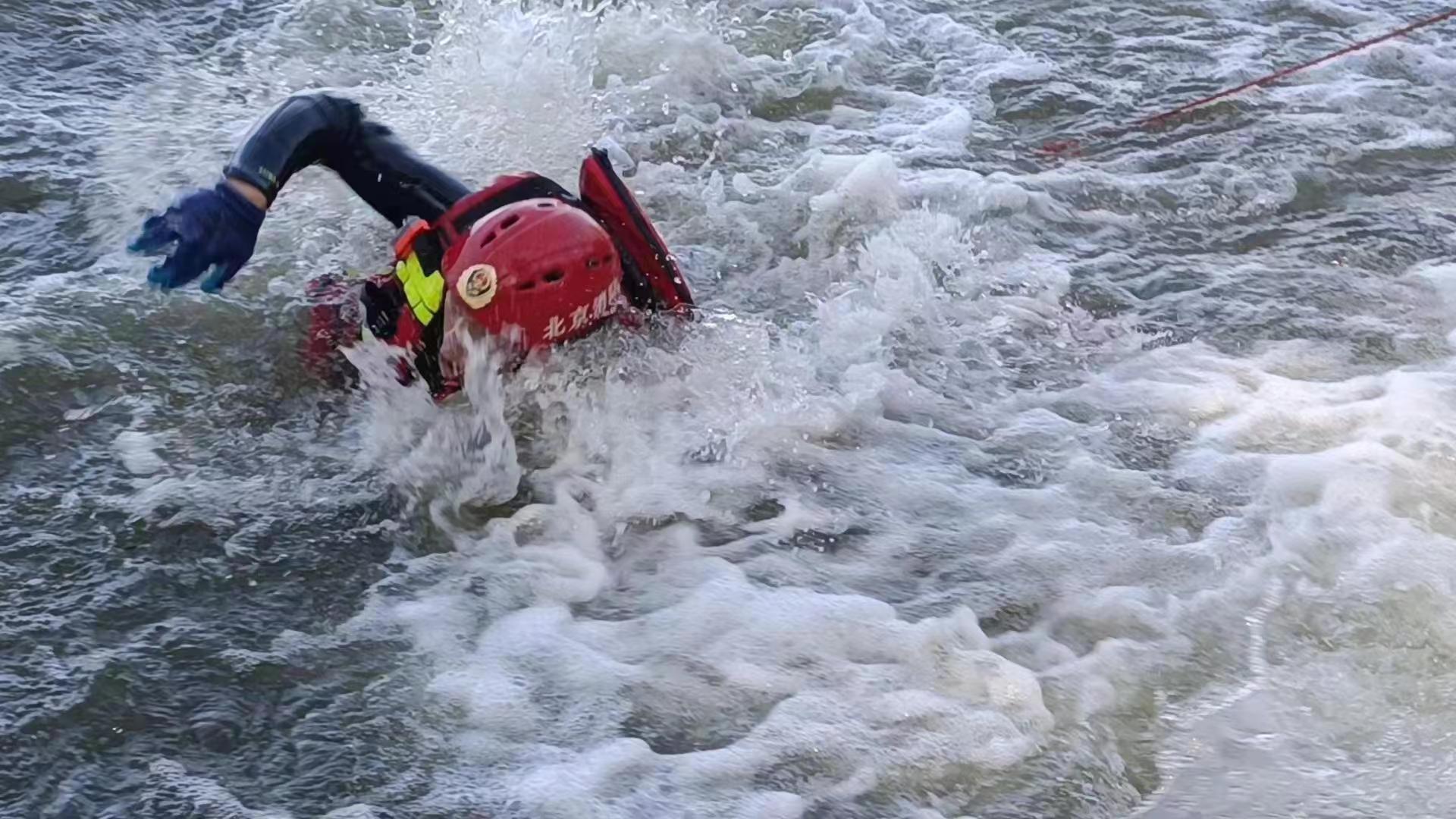 延庆区消防救援支队指战员在进行水域救援演练。图源:延庆区消防救援支队