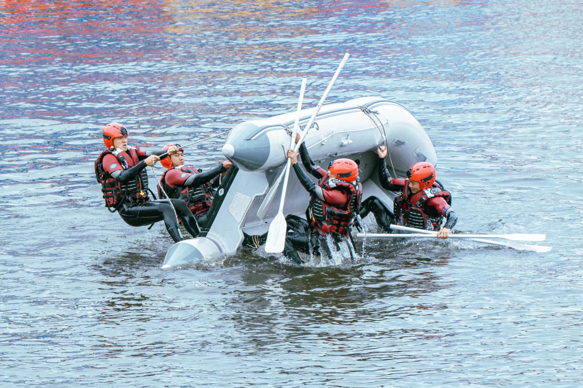 怀柔区消防救援支队针对近几年水域救援灾害事故特点,充分利用现有的装备器材,针对性地制定了活饵救援、O型救援、翻船自救、手抬泵吸水排水等演练科目。演练过程中,消防救援人员充分发挥主力军作用,冲锋在各项急难险重任务最前沿,全体参战人员行动迅速、操作有序,严格按照方案内容展开。