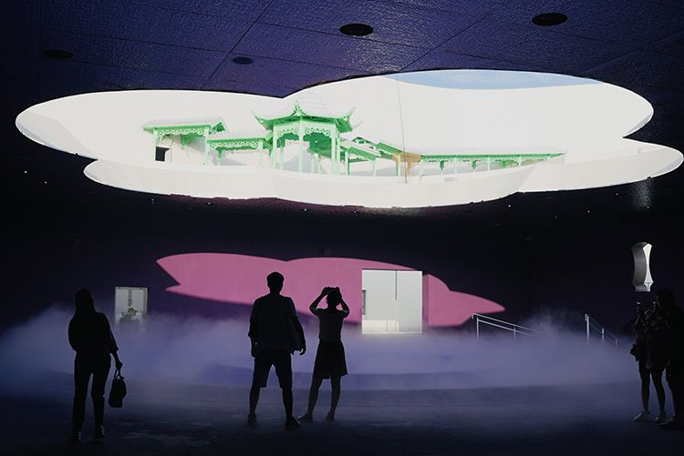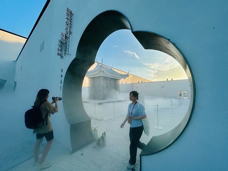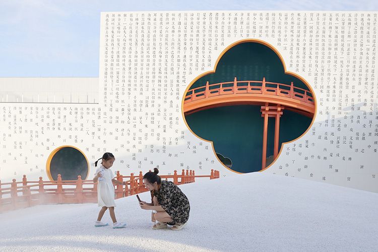 7月23日,历时8年打造的“只有红楼梦·戏剧幻城”,将在廊坊正式开城迎客。在这座城的入口处,有16扇风格迥异的大门。这16个入口通向所有剧场,但经过排列组合,可以组成无数条游览线路,还有上百个情景空间。它打破了“静态观看”的传统戏剧演出模式,融合新情景装置艺术与舞台沉浸技术,呈现出如梦如幻的沉浸戏剧与幻境空间。图为:7月22日,情景园林“若飞若扬”。