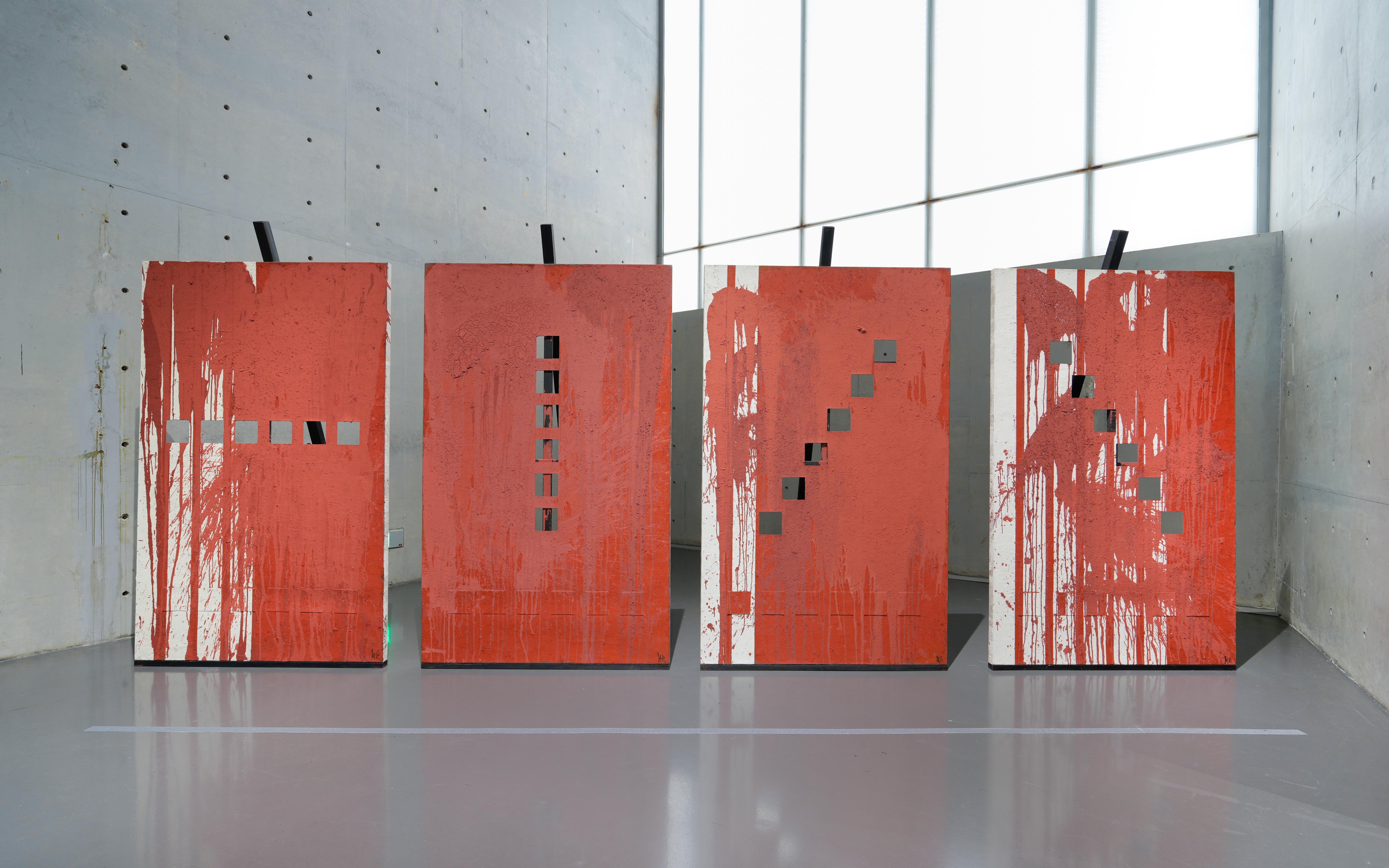 展览展现了黄锐对抽象艺术的探索,特别是通过“缺失”系列作品,和他的新作品《天、地、人–天》(2023),以及他对展览现场的空间干涉、布局,都揭示了一种不局限于和欧美抽象艺术简单对话的独特形式。在《天、地、人–天》中,艺术家放弃了正面观赏作品时惯常的本体论框架,传统的西方绘画范式(即对绘画的理解仅限于正面接触)被解除,从而形成了既无正面也无背面的全新三维式绘画,在多视角的轨迹中,作品表面的不同组合相互交错。