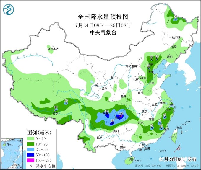 预计24-26日,西南地区有一次较强降雨过程。其中今天,四川东南部、重庆中南部、贵州北部、云南东北部、湖北西南部等地部分地区有大到暴雨,重庆南部局地大暴雨(100~140毫米)。上述部分地区伴有短时强降水(最大小时降雨量30~50毫米,局地可超过70毫米),局地有雷暴大风等强对流天气。中央气象台今晨继续发布暴雨蓝色预警。