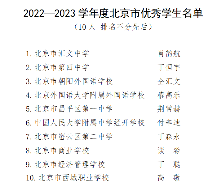 北京市优秀学生名单出炉,10位同学“榜上有名”