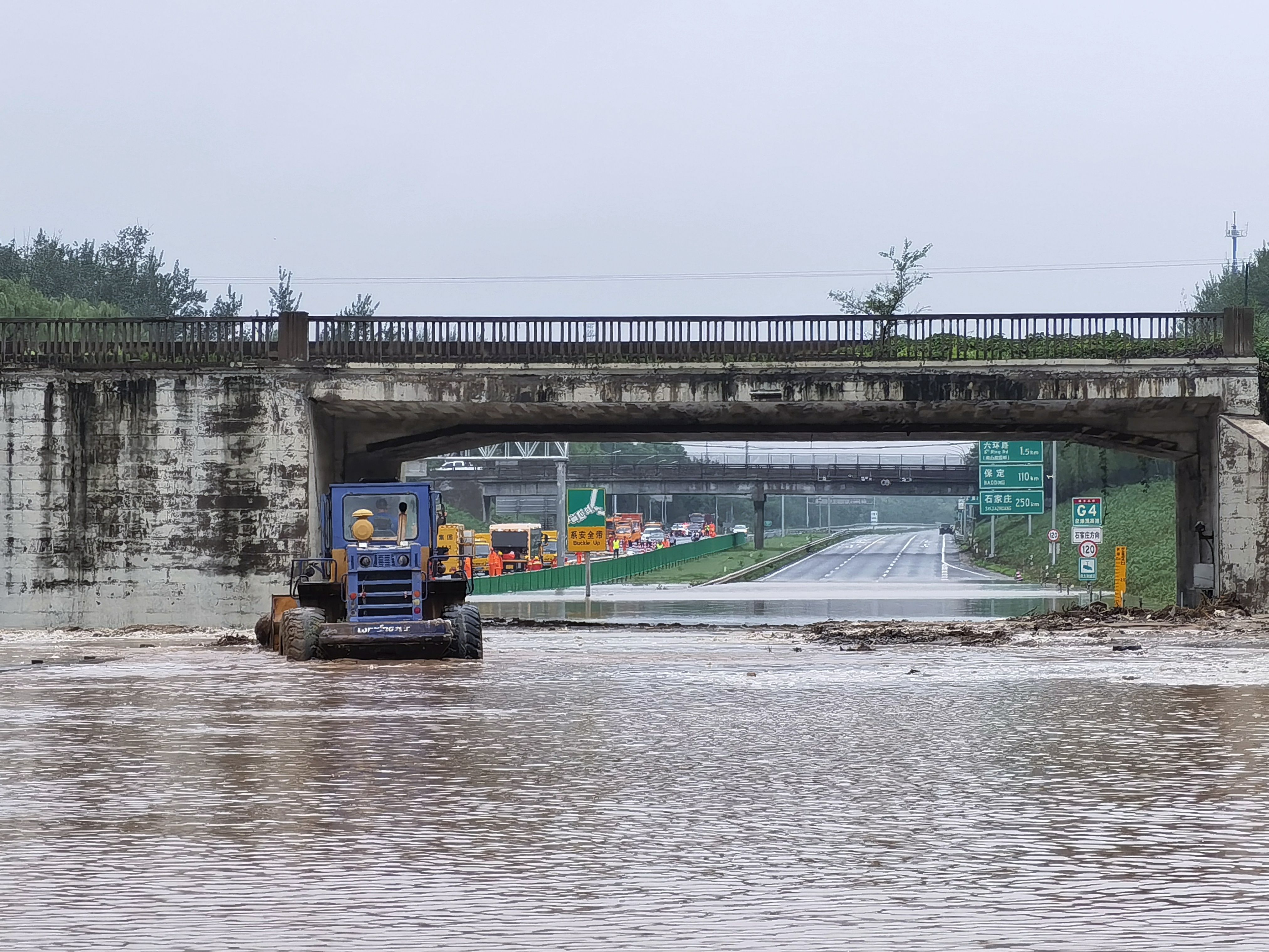 “目前积水已经从最深时的两米多,下降到了一米左右,我们一方面通过泵站将积水向几公里外的河流排放,一方面加快清理路面淤泥。”首发养护公司养护事业部副部长王硕表示。