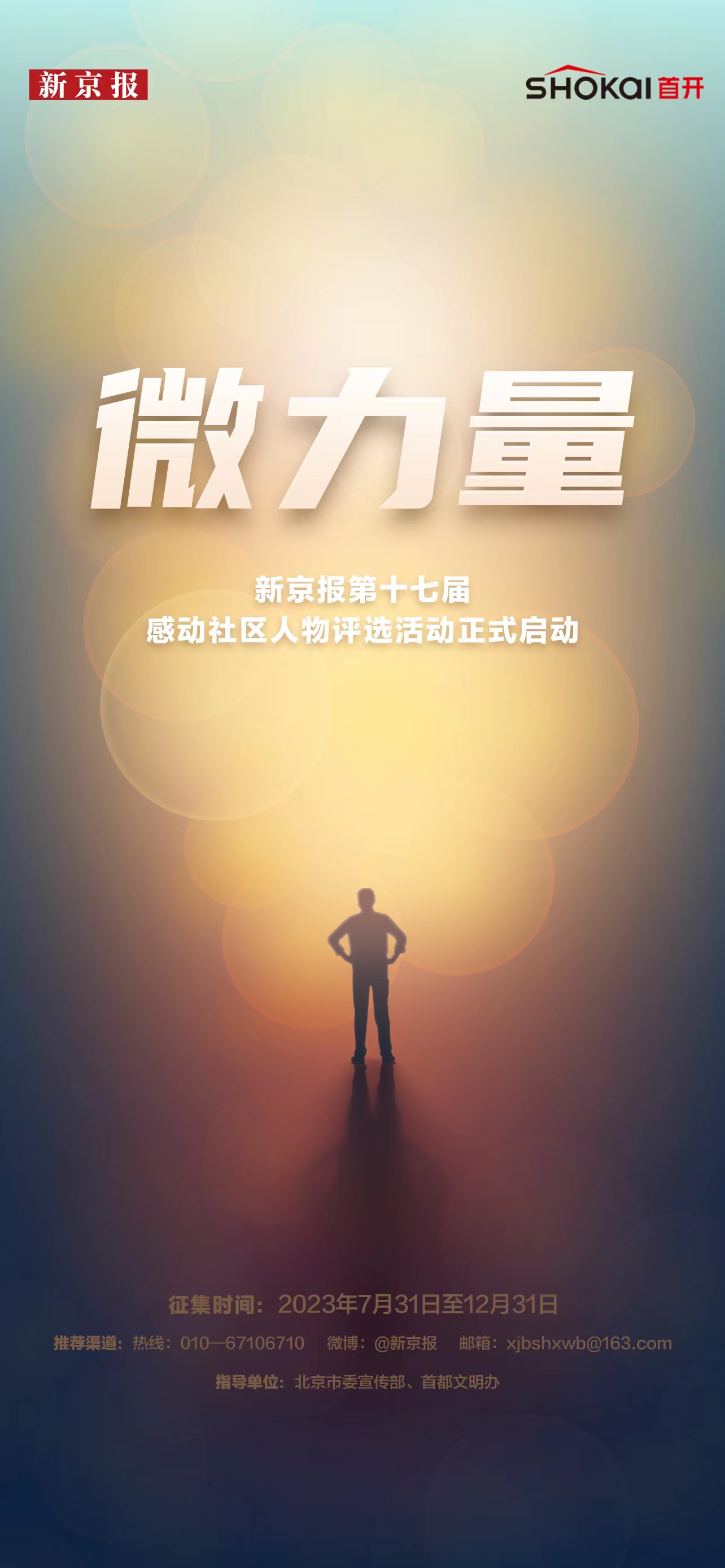 本届活动由北京市委宣传部、首都精神文明建设委员会办公室指导,新京报社主办,首开集团冠名支持,对建设北京、服务北京的榜样人物开展系列宣传报道和评优选拔。