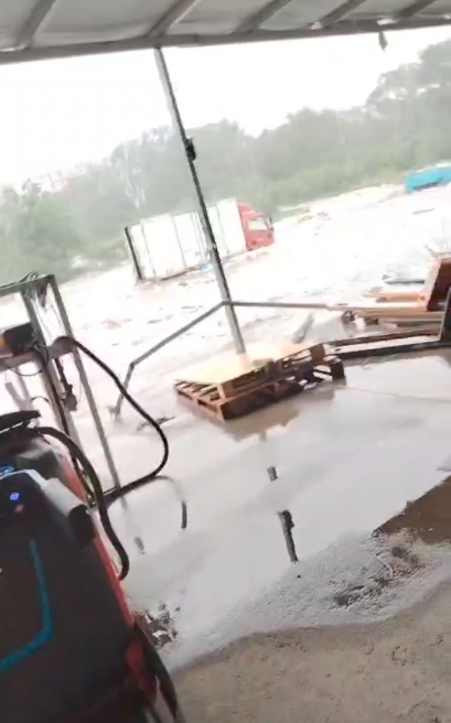一群小伙子开始往后方的高处跑,最后大多数人攀上了集配站的棚架,还有一部分人被困在集装箱顶上,有人开始打110和119求救。范翔看到,集配站停着的几十台车辆被洪水席卷,小货车和轿车被冲远了,几辆半挂车在水中漂着。