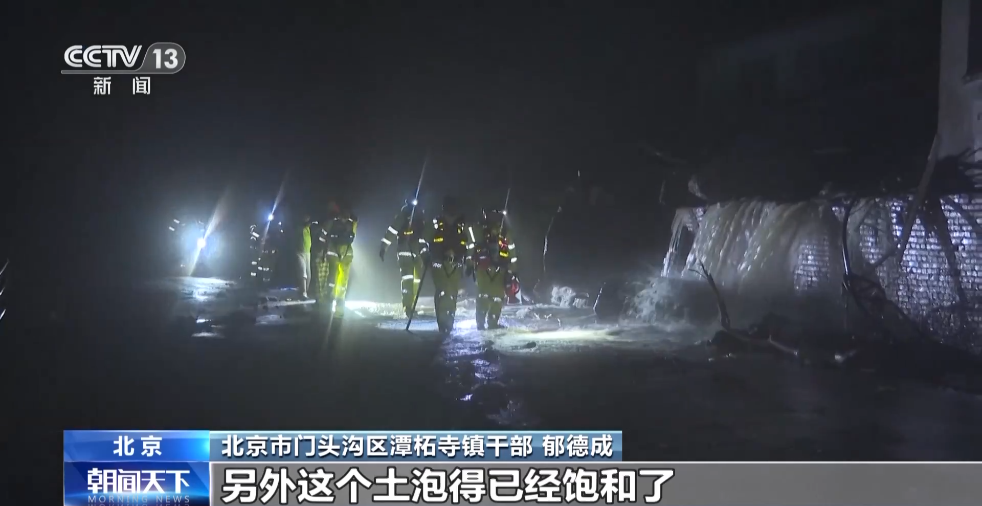 北京市门头沟区潭柘寺镇干部 郁德成:下半夜预报还有中到大雨,这是一个因素,另外土泡得已经饱和了,随时有可能塌方。现在都停水停电了,有些家里面物资方面不敢保障,把他们转移下来踏实点。