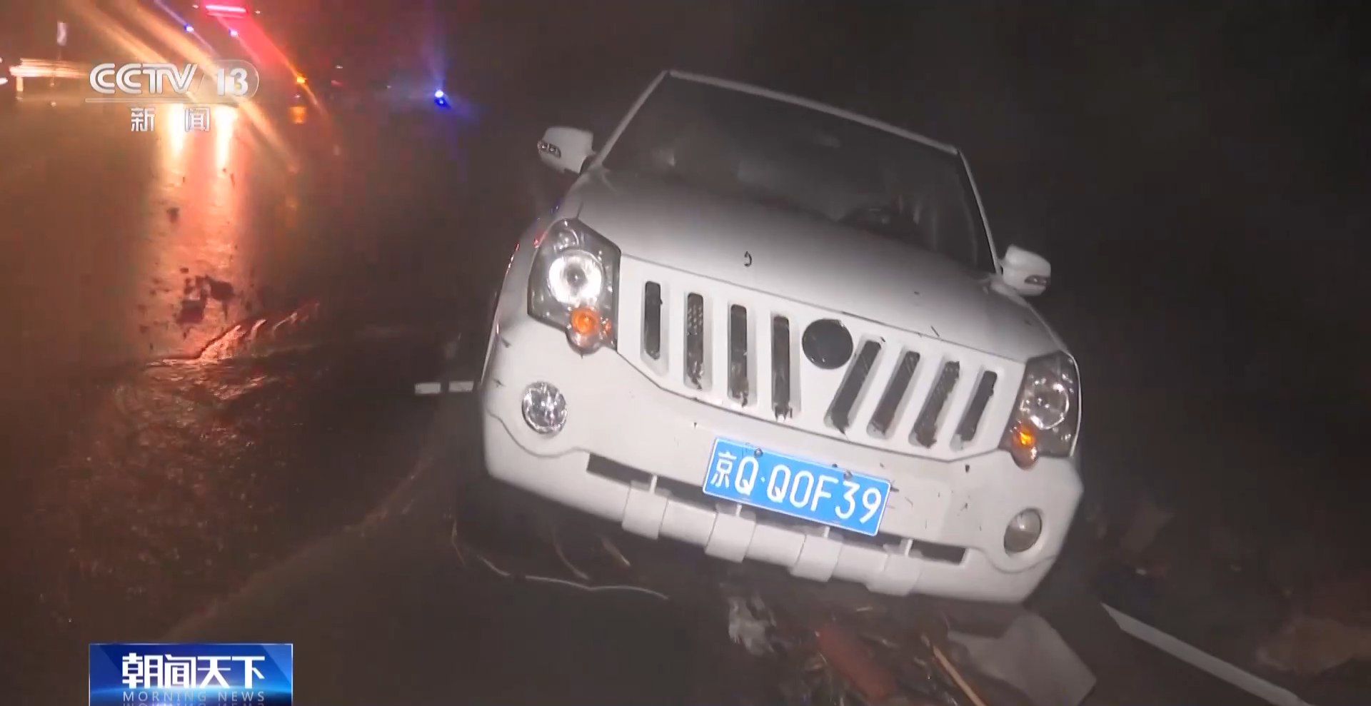 这条路也是刚刚才被消防打通,路边还能看到一辆被水冲下来的车,这条路目前还随时有垮塌的危险。