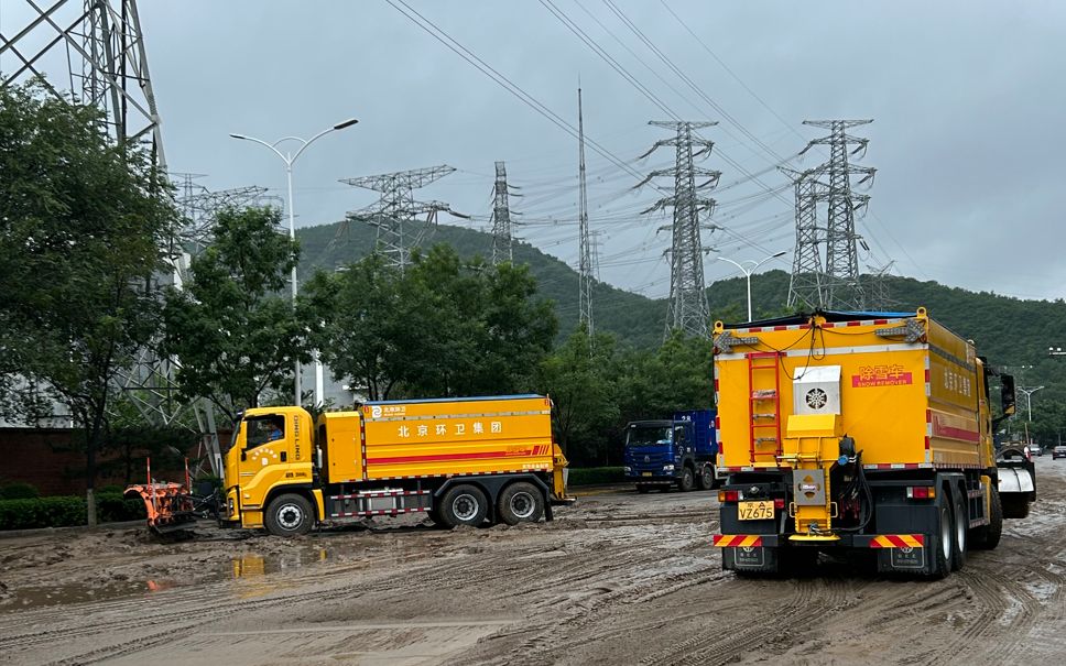 北京环卫集团派出50余部大型机械车辆赶赴门头沟区清淤