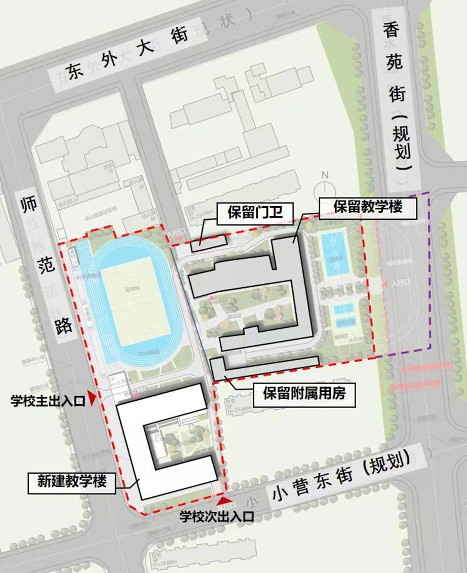 新校园将设立12个教学班、学位480个,建成后,将有效缓解目前延庆办学压力。届时,新建的教学空间和体育活动场地将为孩子们提供更舒适的学习活动空间。