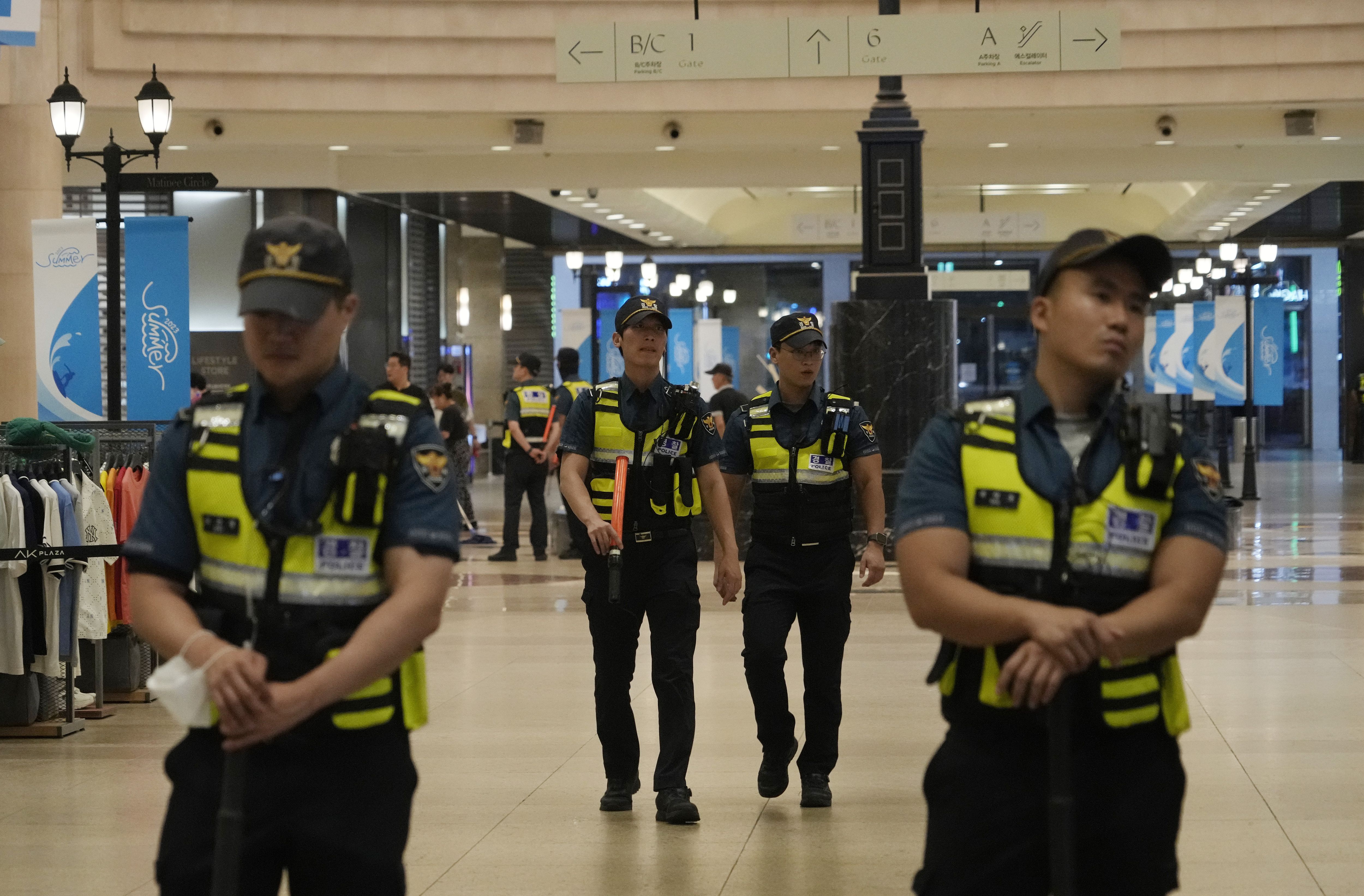 当地时间8月3日,韩国京畿道,城南市的一个地铁站附近,警察在现场巡逻。图/视觉中国