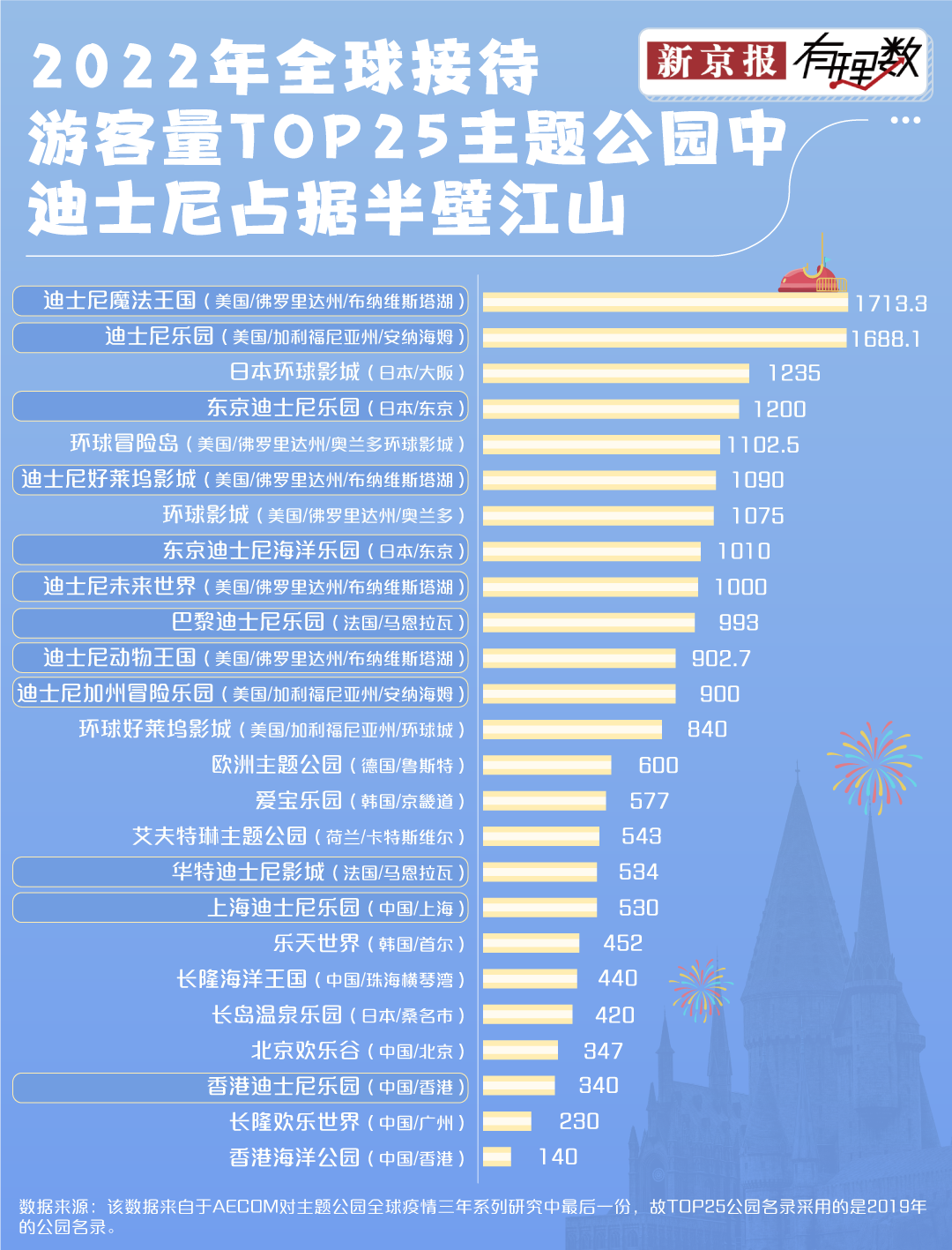 根据主题乐园权威机构TEA和AECOM发布的《2022全球主题公园和博物馆报告》,在TOP25主题乐园中,迪士尼旗下的主题公园就占了12个,显而易见,迪士尼对游客的吸引力是巨大的。