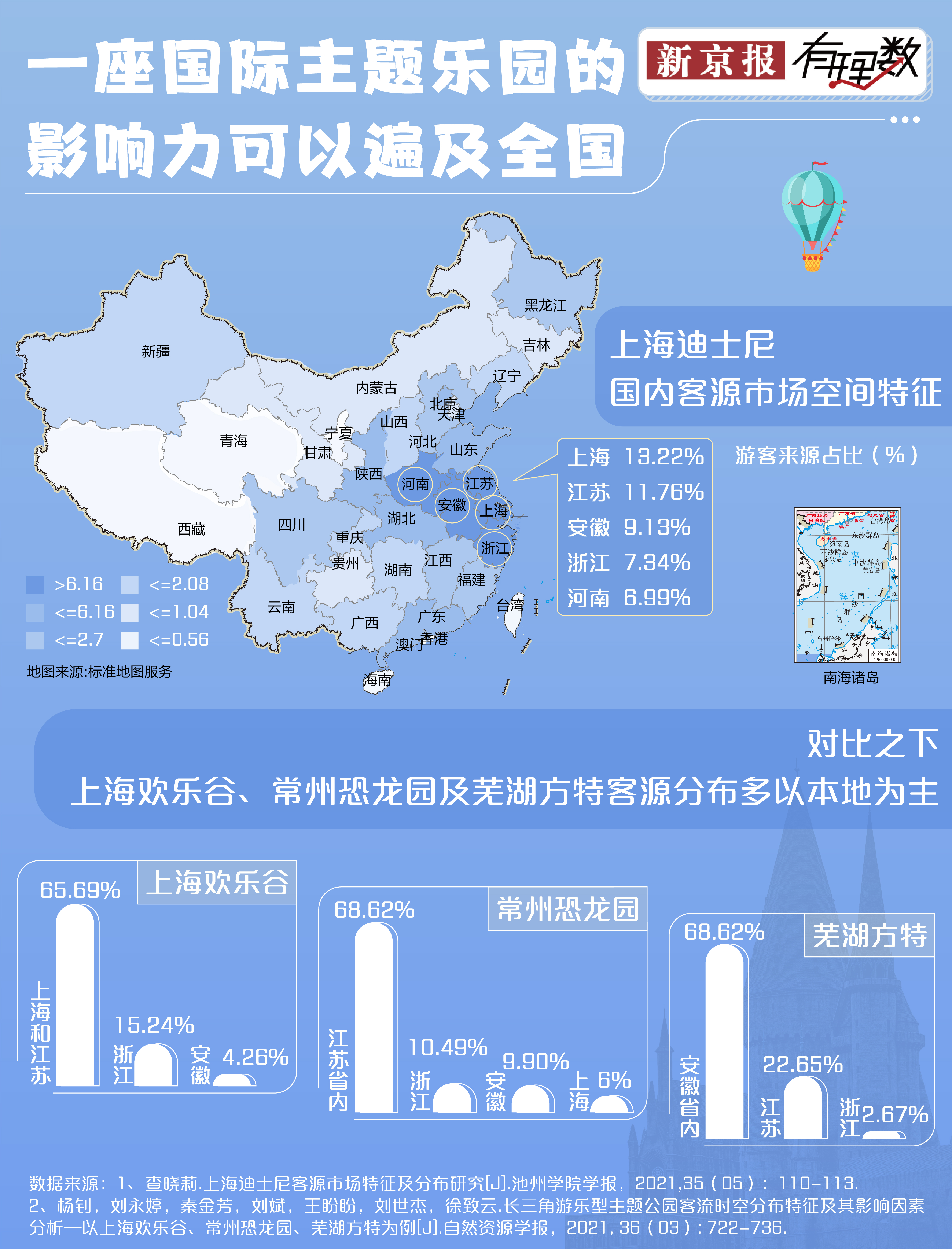 大型主题公园给落地城市带来巨大的文旅流量入口,有研究表明,上海迪士尼来自上海本地的游客仅占13%,其他都是外地游客,可见其影响力已经遍及全国。