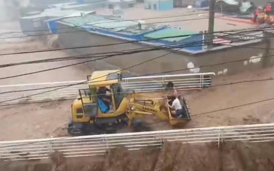 ▲2023年7月31日,刘兵开着铲车,在房山的洪水中救人。图/网传视频截图