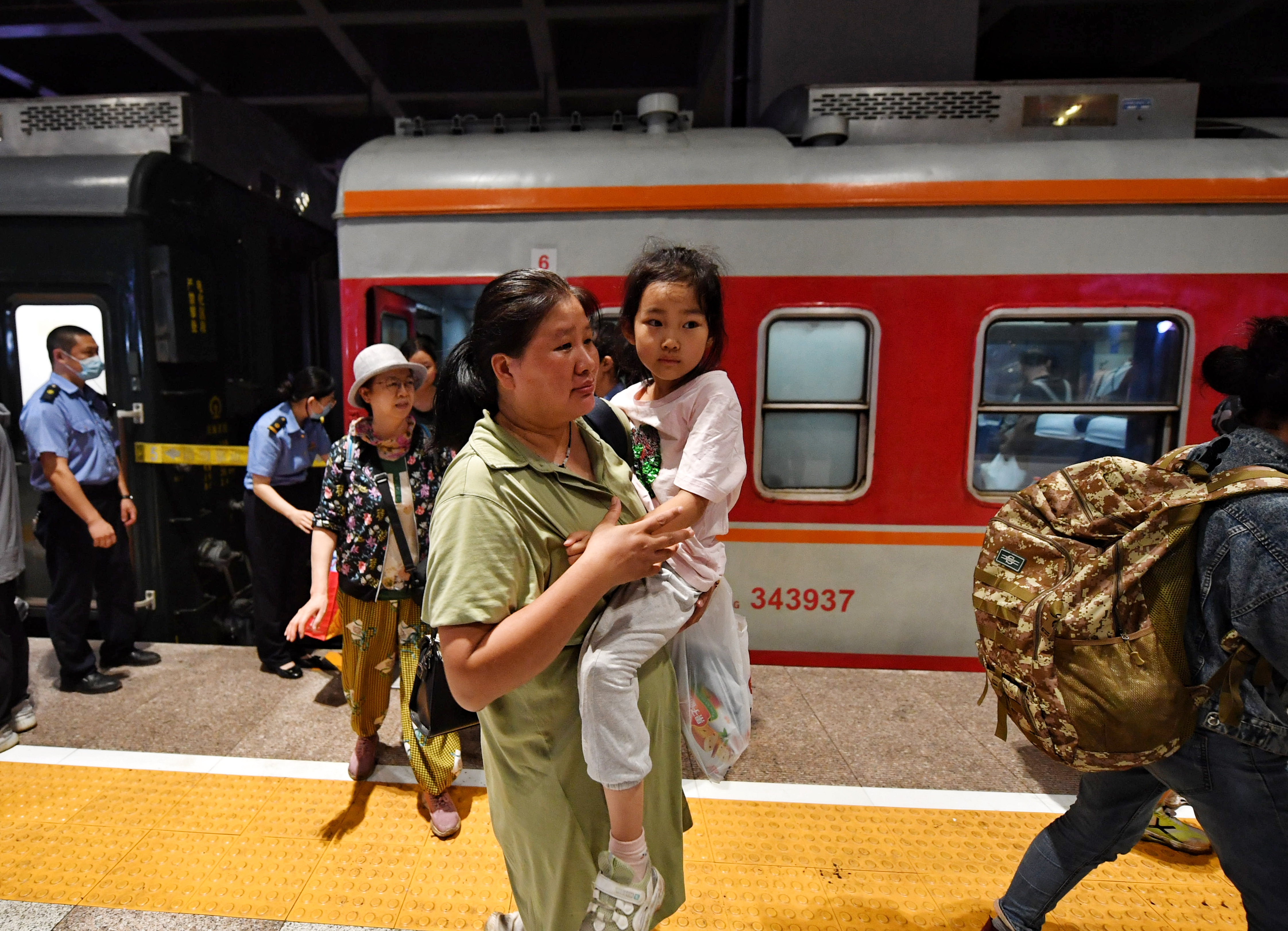 ▲2023年8月3日,丰沙线沿线的安家庄站Z180次、落坡岭站K396次最后一批因水灾滞留旅客乘转运客车顺利抵达北京丰台站。新京报记者 王贵彬 摄