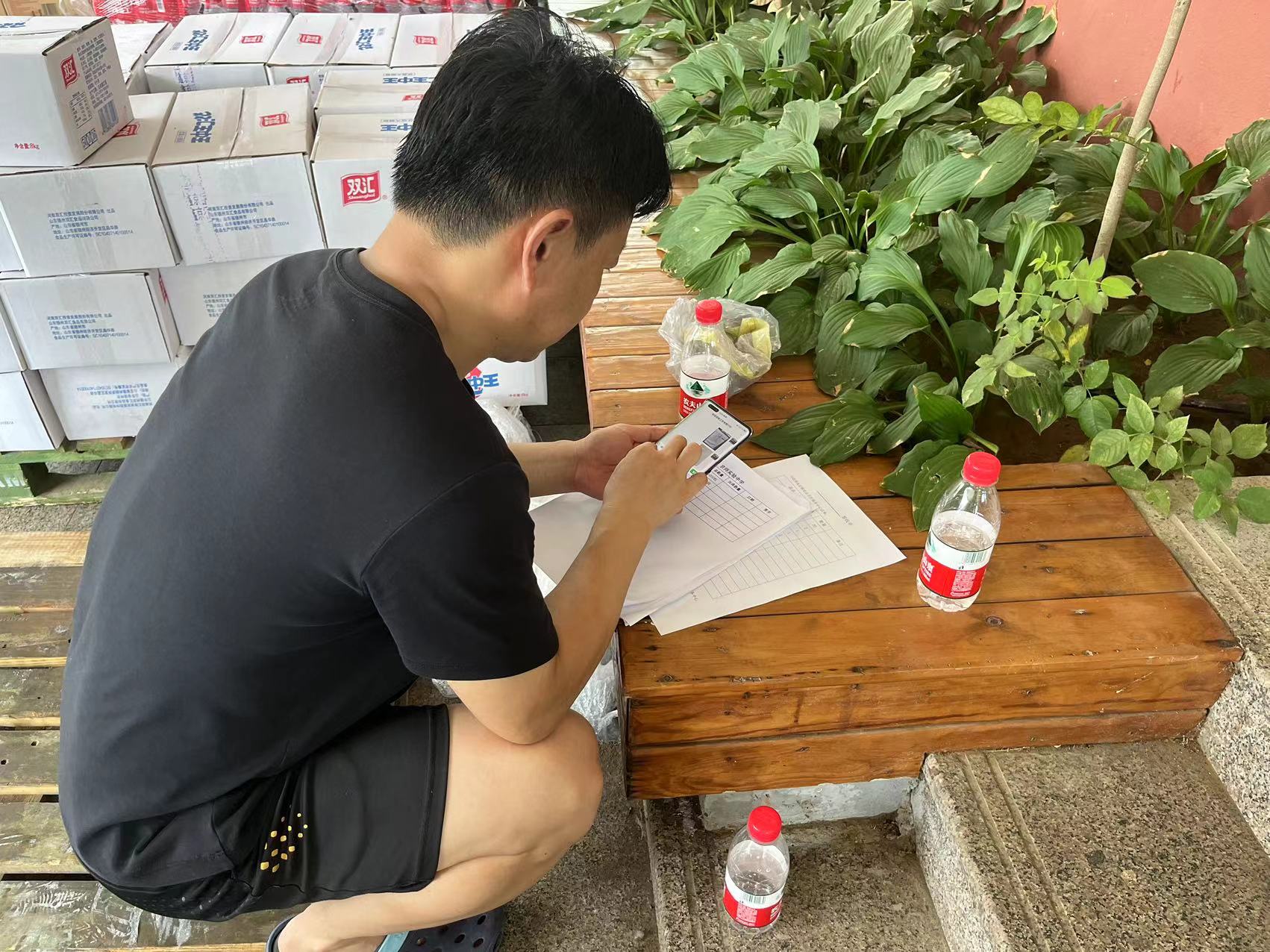 学校老师认真确认转运物资情况。学校供图