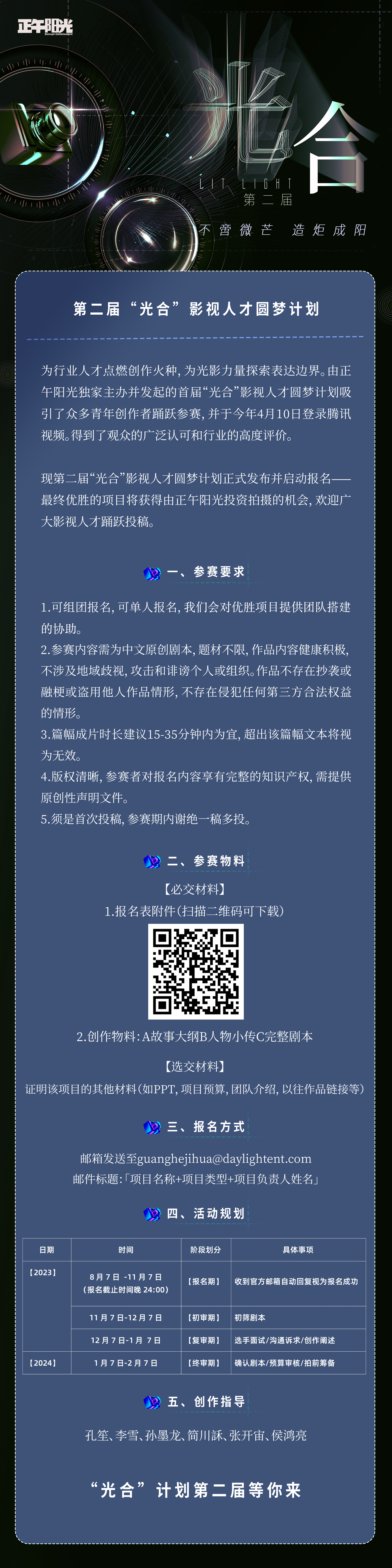正午阳光第二届“光合”影视人才圆梦计划启动