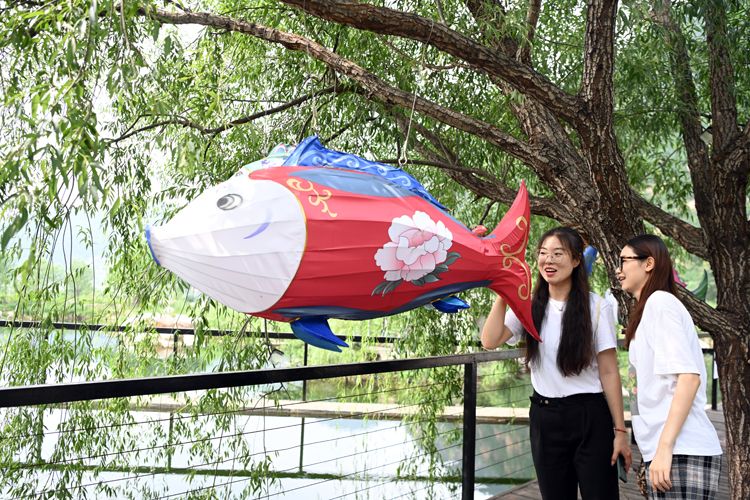 8月8日,平谷区黄松峪乡,游客在欣赏艺术品。以“色染黄松峪”为主题的大地艺术节上,来自中央美院和中国美院的15位艺术家,深入挖掘乡土文化,通过艺术作品将本地传统文化、民俗风情、生产生活展现出来。“大地调色盘”、“五光十色”、“洞见”、“滢迎”、“马路印象”......一件件作品分别安置在黄松峪旅游集散中心、白云寺村、京东大溶洞、刁窝南路、万圣谷美术馆、刁窝村、塔洼村等点位,扮靓17.9公里的旅游线路。