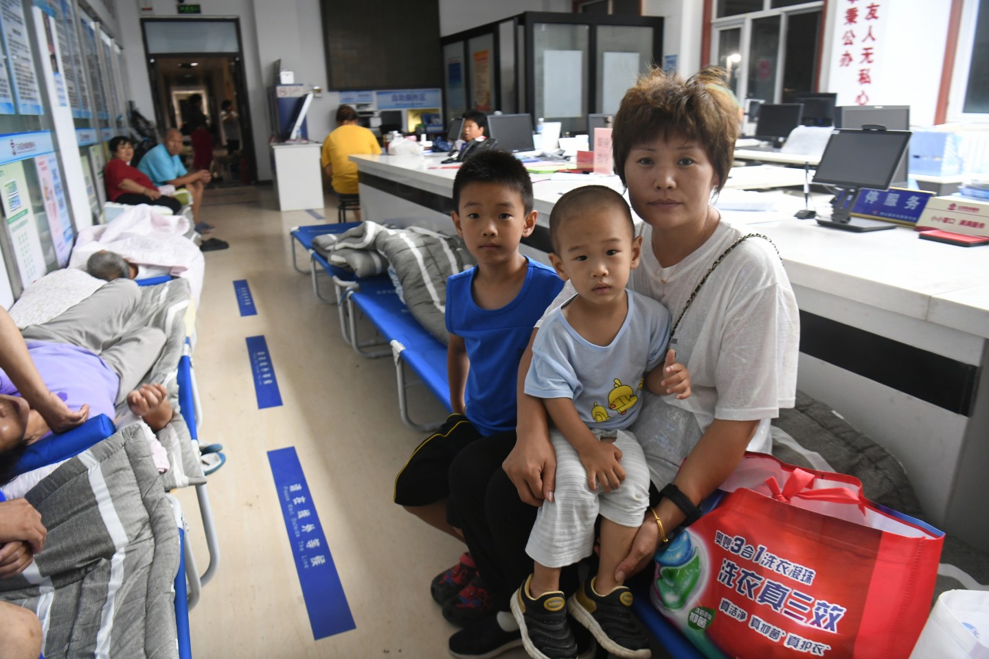45岁的杜爱华,一家人都在安置点,她带着婆婆和两个孩子住在大厅,丈夫住在帐篷里。孩子们睡着以后,她总会睁着眼睛,在漆黑的夜里盯着天花板,就这样躺很久,可能和她一样的人还有很多。这个大厅里,真正能睡着的人并不多,但不管怎么样,在这里至少能感觉到安全,比住在自己家里担惊受怕好很多。