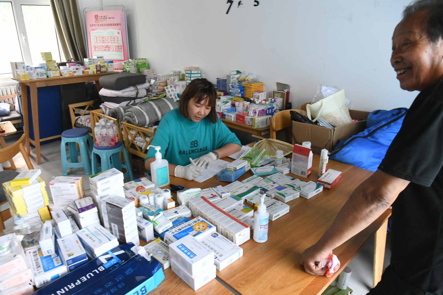 进入安置点的第二天,连维茂忽然胸闷,喘不过气来,卫生院的急救车将他送到了河北邻县的医院急救,之后又回到了安置点。卫生院也被水冲毁了,在转移之前,医护人员抢运出了大部分药品,在安置点设置了“临时卫生院”,为村民开药、处理紧急情况。