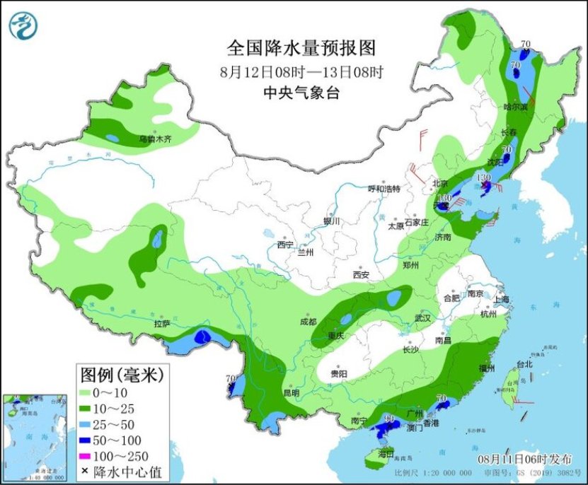 新京报讯 据中央气象台消息,中央气象台预计,8月11日至13日,东北及京津冀地区有强降雨天气。其中,京津冀地区的降雨主要出现在今天夜间至12日白天,河北中南部、北京、天津、山西、山东西北部等地的部分地区有大雨或暴雨,河北中部、天津南部局地大暴雨。今年第6号台风“卡努”即将进入我国辽宁省境内,其外围云系已经给东北地区东部带来强降雨,预计该风雨影响将持续至13日,辽宁、吉林、黑龙江的降雨量将有大到暴雨,局地大暴雨。